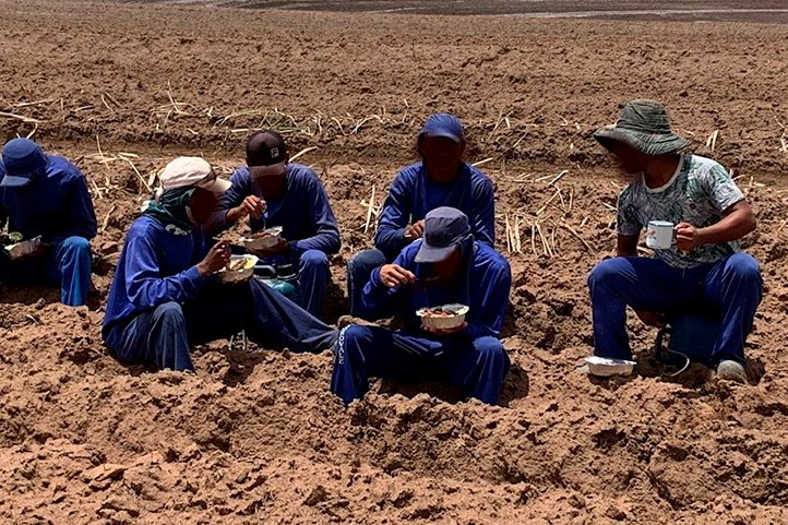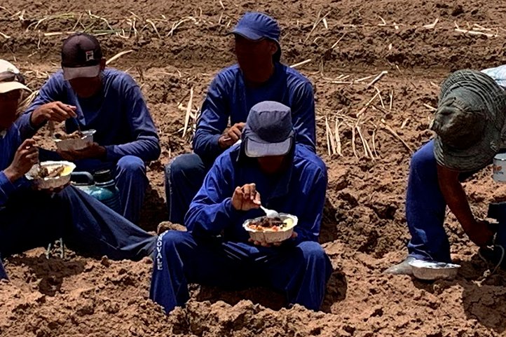 “A condição degradante, que configura exploração de trabalho análogo à escravidão, foi caracterizada pela ausência de refeitório, sendo os trabalhadores obrigados a fazer refeição a céu aberto, assentados pelo chão; eles também não tinham acesso a sanitários, estavam abrigados em alojamentos superlotados e alguns deles com teste positivo para Covid-19”, descrevem os procuradores do MPT que compõem a equipe de fiscalização.