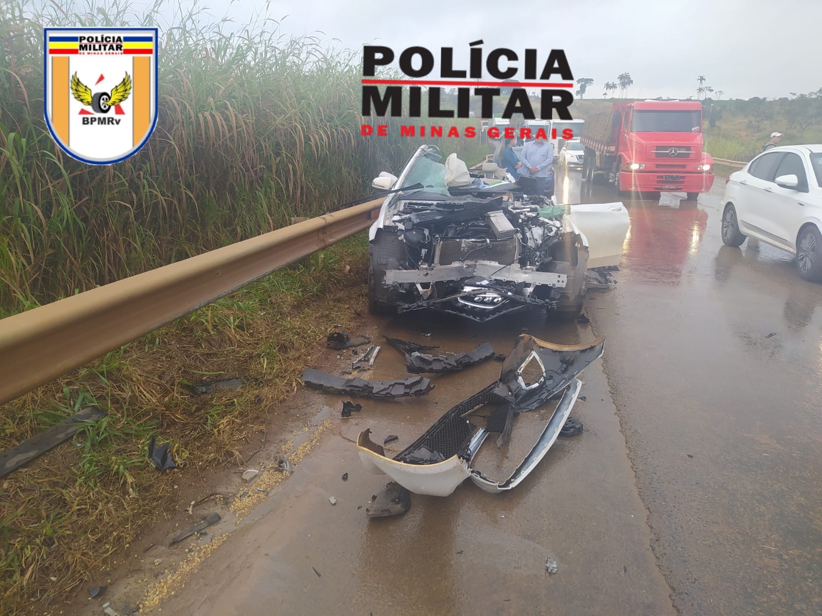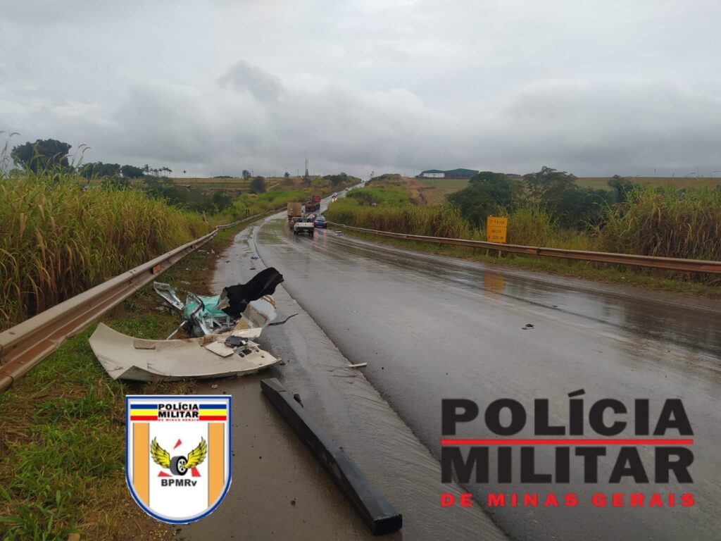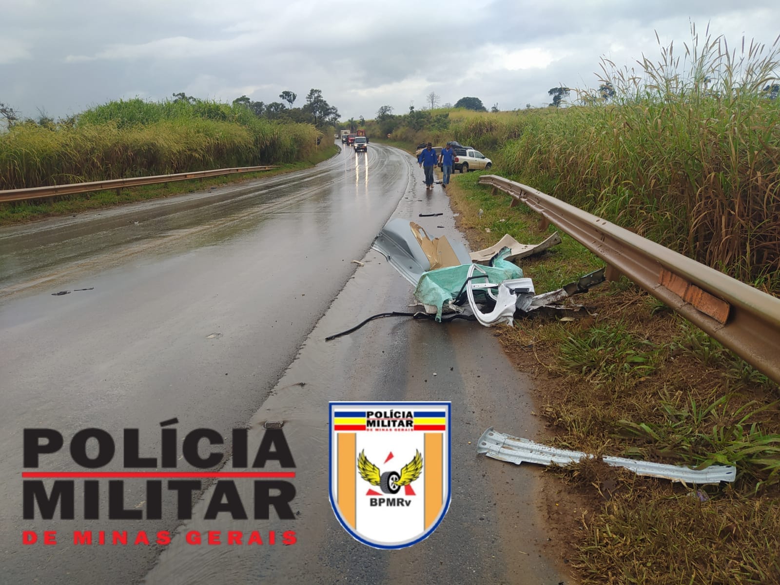 Segundo informações, o bitrem, conduzido por um homem de 35 anos, seguia sentido BR-362 a São Gotardo quando o último veículo da combinação começou a deslizar na pista, devido à chuva, e invadiu a contramão. O condutor contou aos militares que tentou controlar os veículos, porém acabou colidindo com o automóvel M. Benz e na lateral do caminhão Scania.