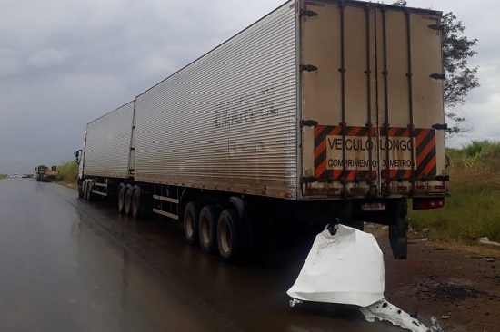 Acidente entre carro e bitrem deixa motorista gravemente ferido na BR-354 em Rio Paranaíba