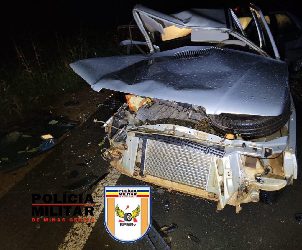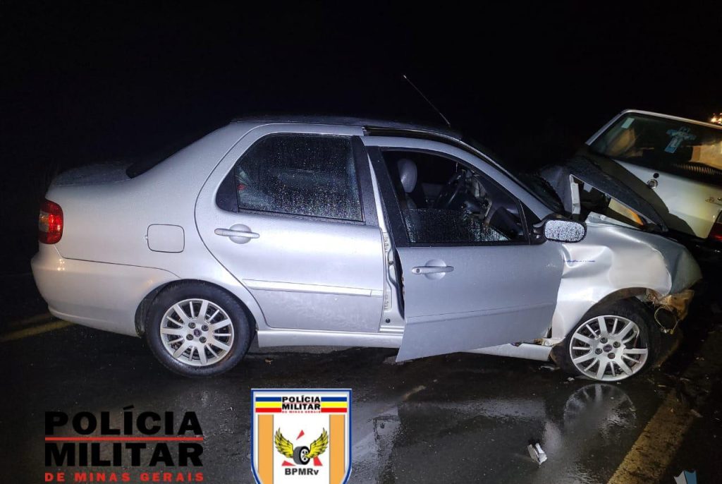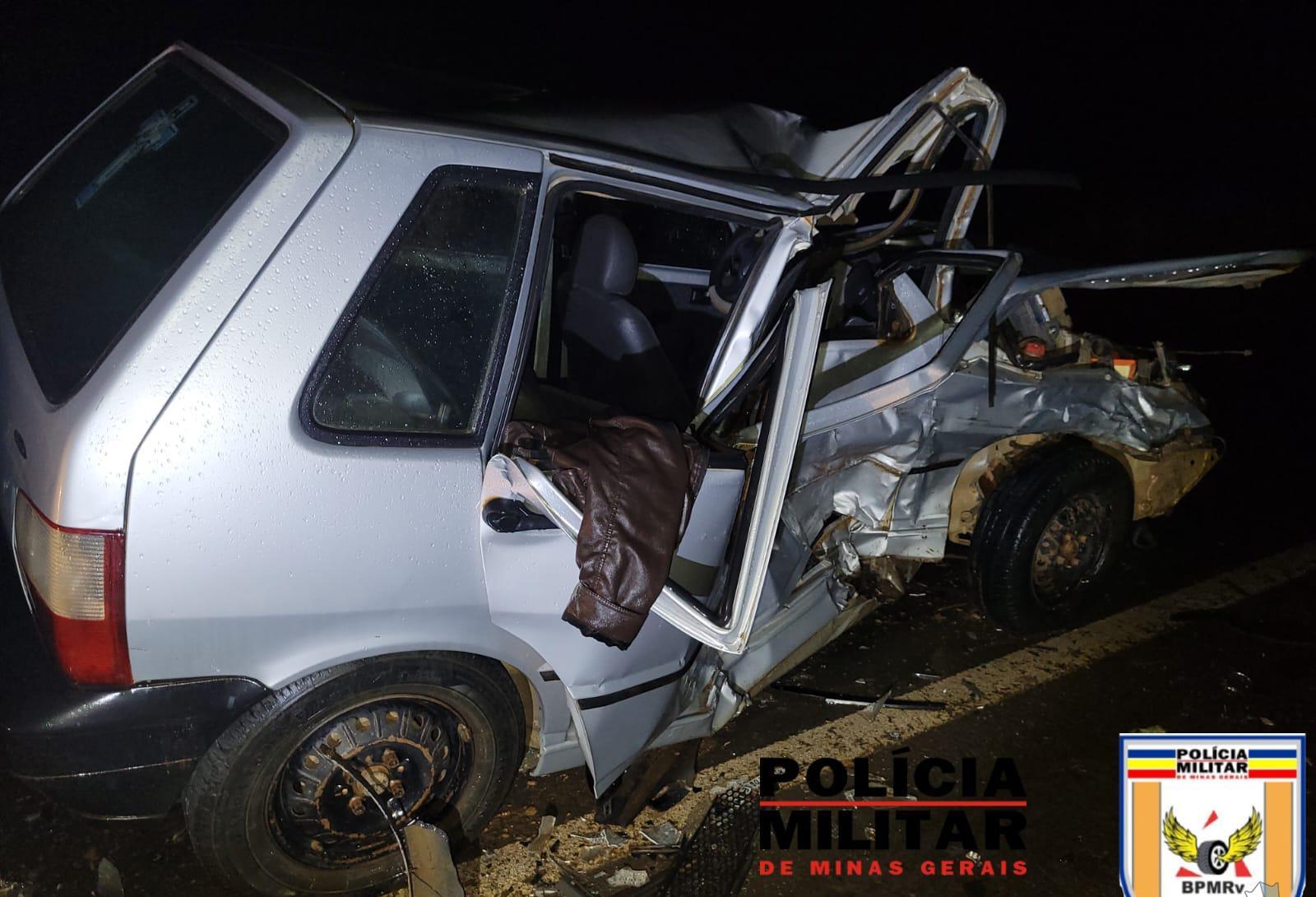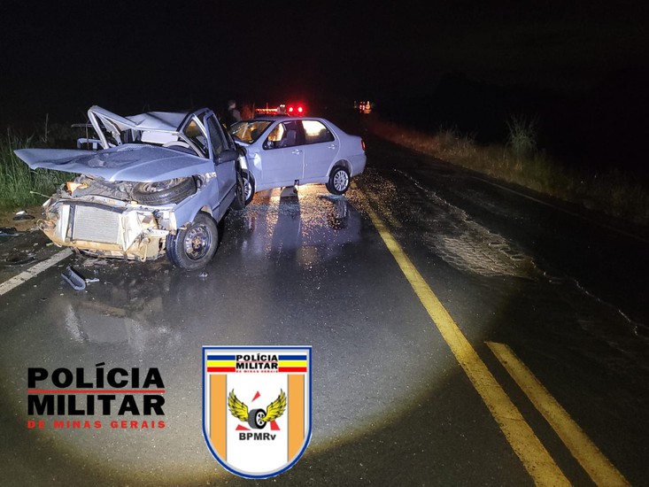 De acordo com informações da Polícia Militar, através da Polícia Militar Rodoviária, por volta das 18h20, atendeu a colisão frontal envolvendo um Fiat/ e um Fiat/Siena, ocorrida quando chovia muito na rodovia. No Fiat/Uno, viajavam o condutor V. B. S de 55 anos, residente em Presidente Olegário, e o passageiro M. H. S de 84 anos, residente em Lagamar, que acabou falecendo. Já no Siena, havia o condutor C. F. C de 34 anos, sua esposa H. M. S. N de 39 anos e seu filho E. N. C de 04 anos (que estava usando a cadeirinha), residentes em Lagamar.