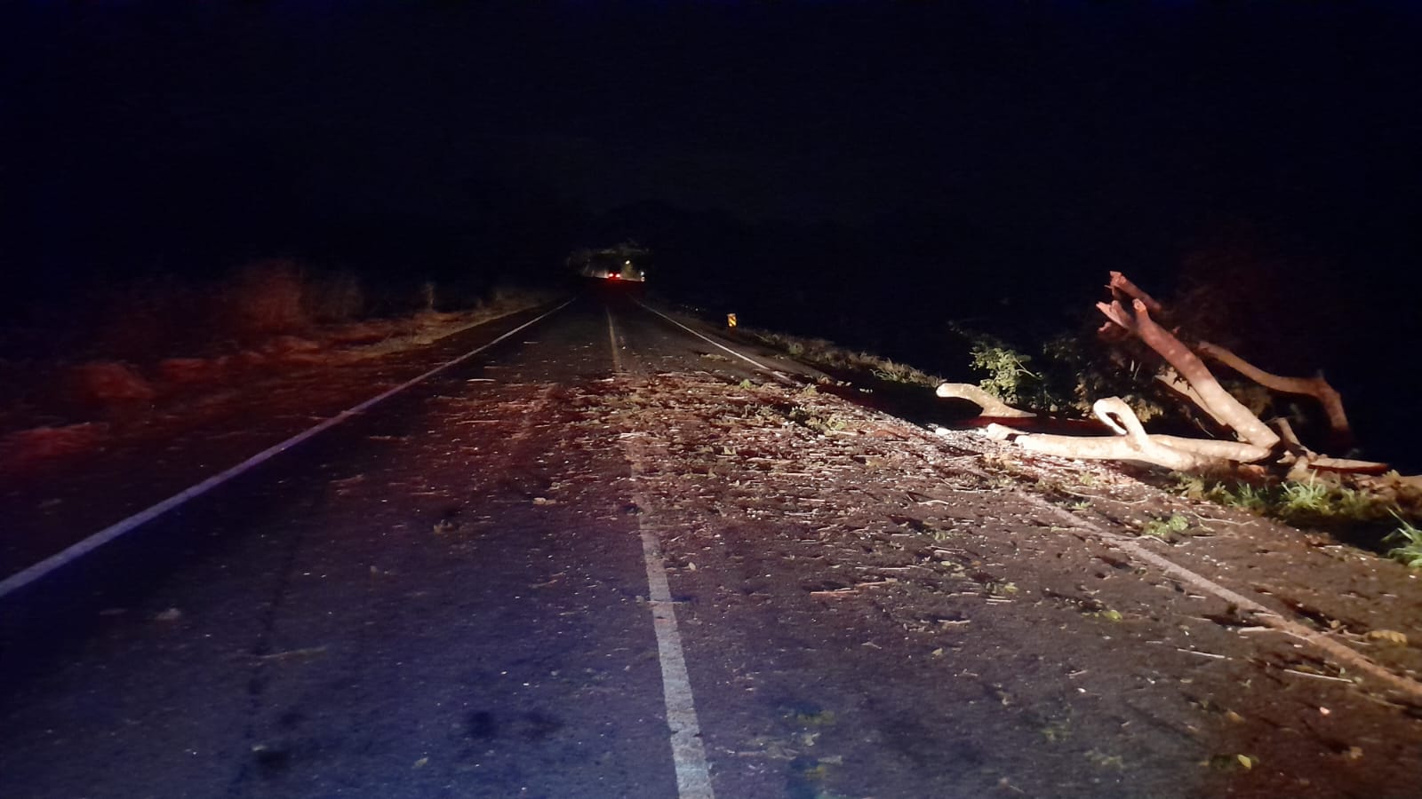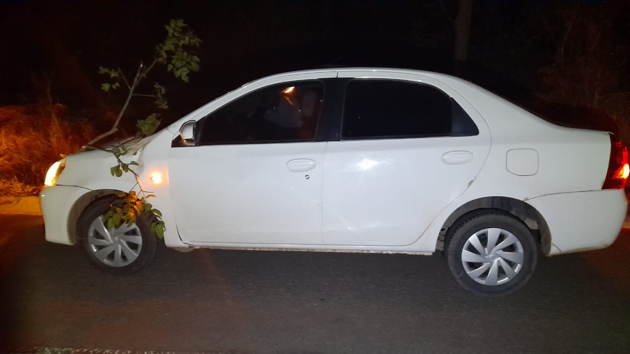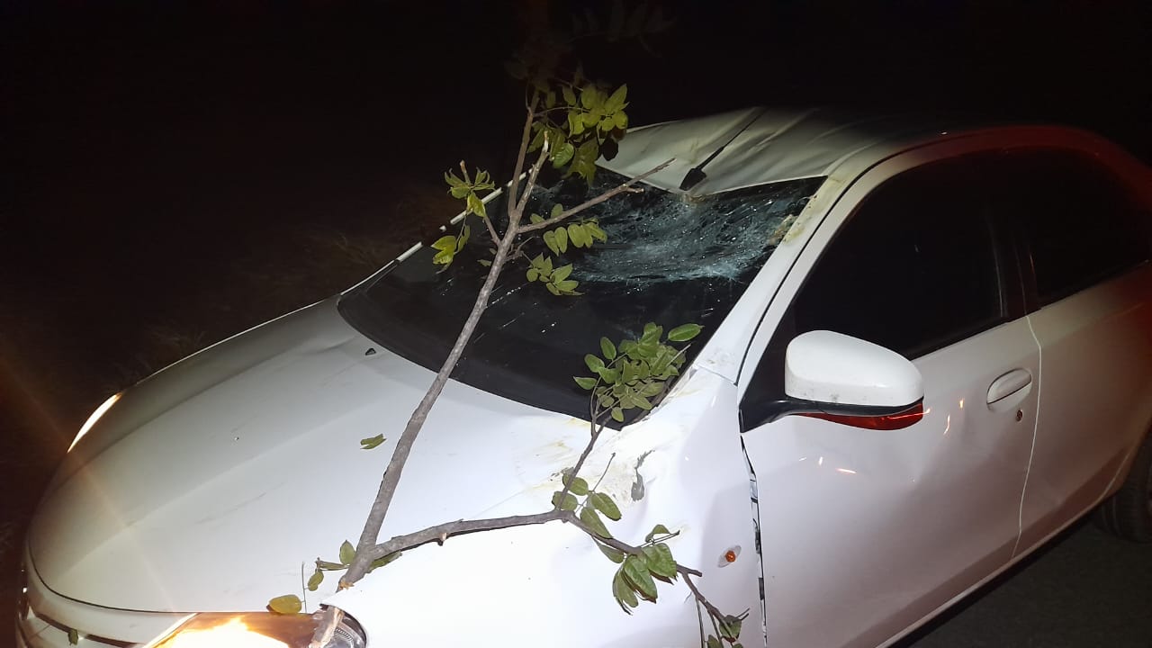 O acidente aconteceu na noite dessa terça-feira (28) no km 215 da BR 352, em Carmo do Paranaíba. Uma árvore de grande porte caiu na rodovia e atingiu um automóvel que transitava pelo local. Por sorte, a condutora não se feriu.