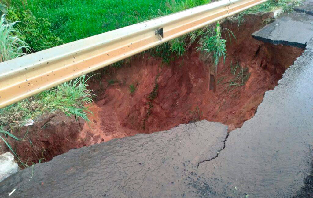 As fotos feitas na tarde desta sexta-feira (23/12) mostram como esta à situação com a cratera tomando o acostamento e avançando em direção à pista. A Polícia Militar Rodoviária sinalizou o local com cones para advertir os motoristas.