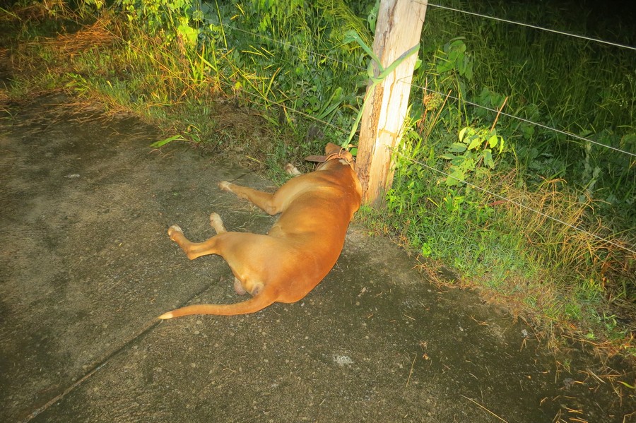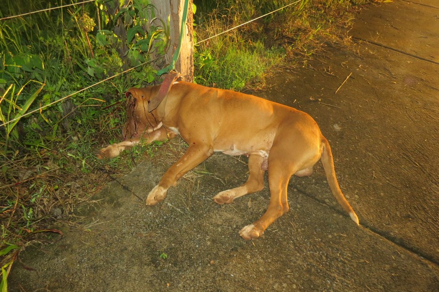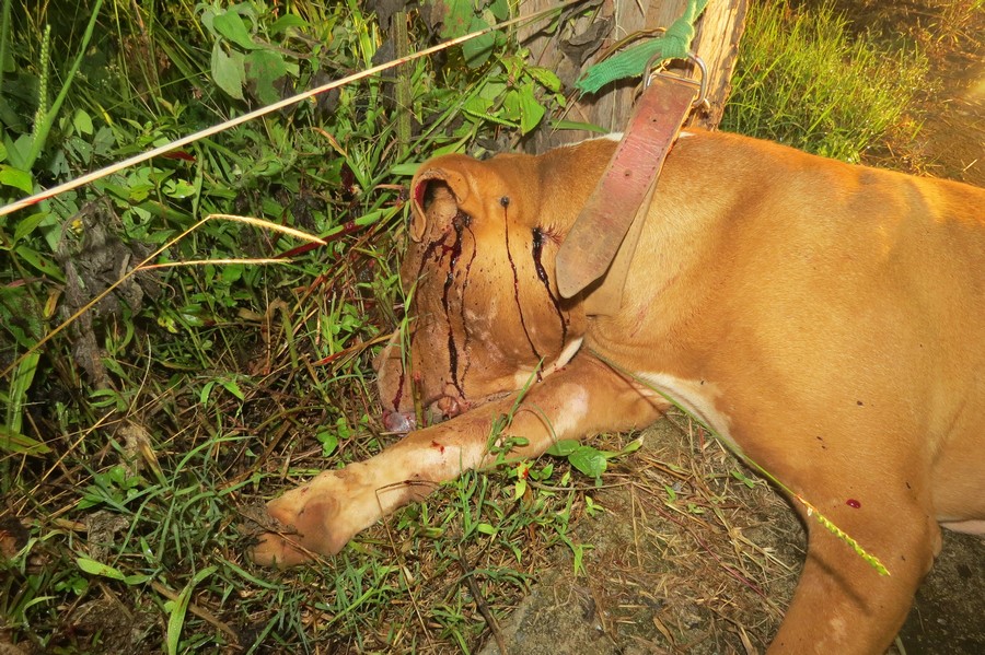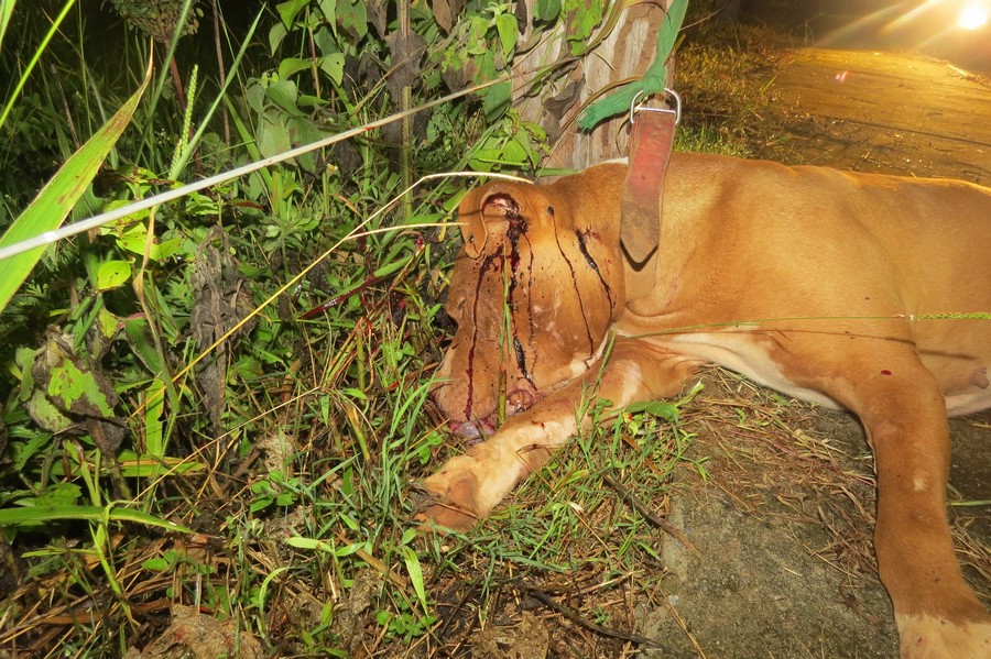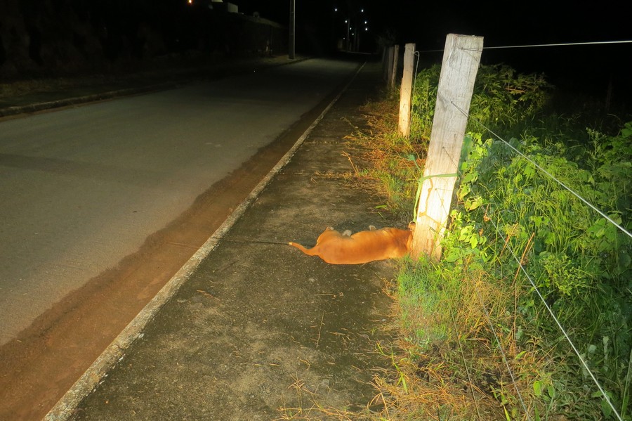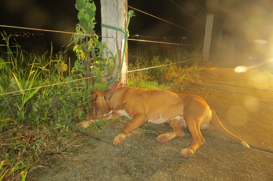 Um cachorro da raça Pit Bull foi encontrado morto por um homem que passava por uma rua no bairro Santa Cruz em Carmo do Paranaíba, na noite desta quarta feira (25-01).