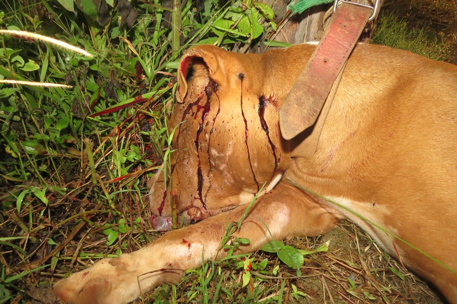 De imediato a Policia Militar foi acionada e registrou uma ocorrência. No local os Militares observaram que o cachorro havia sido morto a tiros, já que havia sinais de perfuração na cabeça do animal.