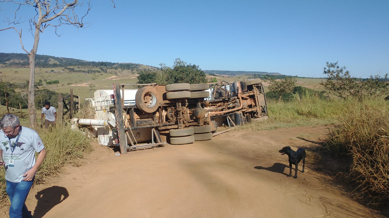 Um caminhão acabou tombando na tarde desta sexta feira 20/05, na estrada vicinal da Serra do Santinho, município de Carmo do Paranaíba.