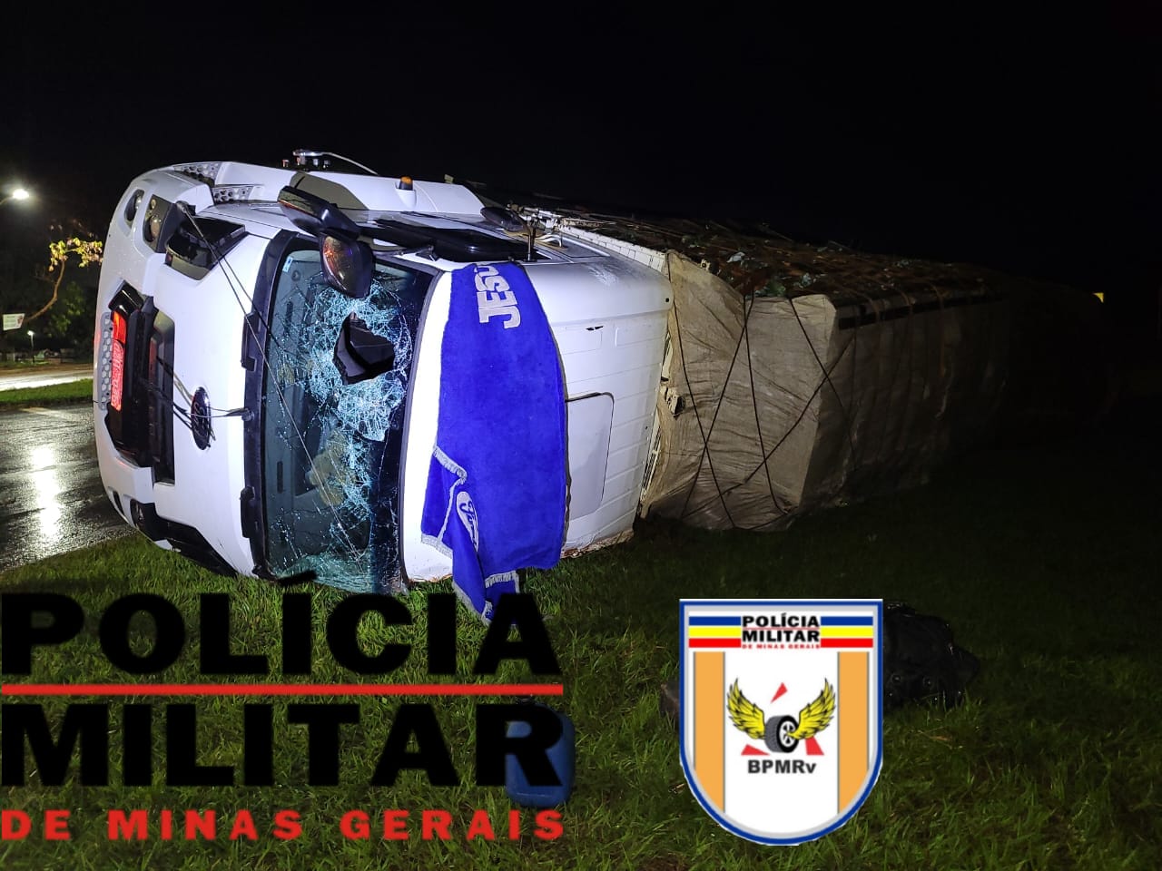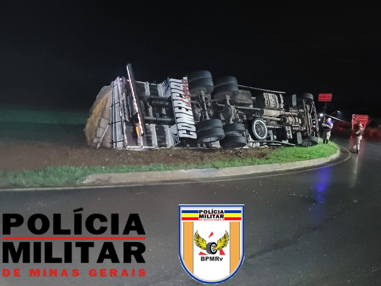 De acordo com informações da PMRv, o condutor do caminhão contou que trafegava normalmente pela rodovia, mas ao passar pelo trevo deparou com um carro fazendo a rotatória e precisou frear bruscamente o veículo de carga. Com isso, ele perdeu o controle direcional do Ford/Cargo, cor branca, que invadiu o canteiro e tombou, ficando com uma parte dentro da pista.