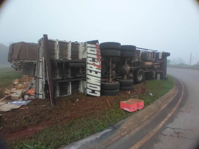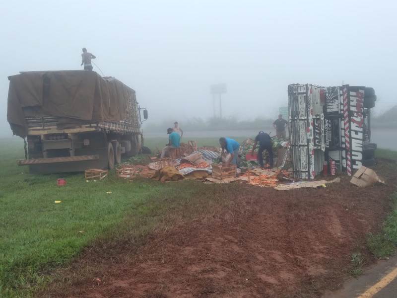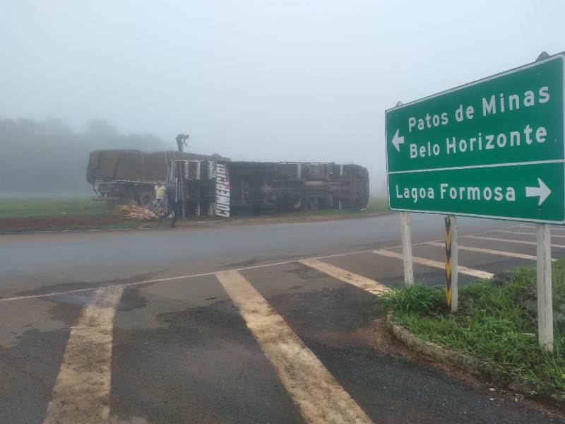 Um caminhão carregado com verduras tombou no final da noite desta sexta-feira (14/04), no trevo de acesso a cidade de Lagoa Formosa na BR-354. O veículo seguia sentido Carmo do Paranaíba a Patos de Minas. O motorista, um homem de 47 anos, não sofreu ferimentos. A Polícia Militar Rodoviária compareceu ao local para registrar a ocorrência.