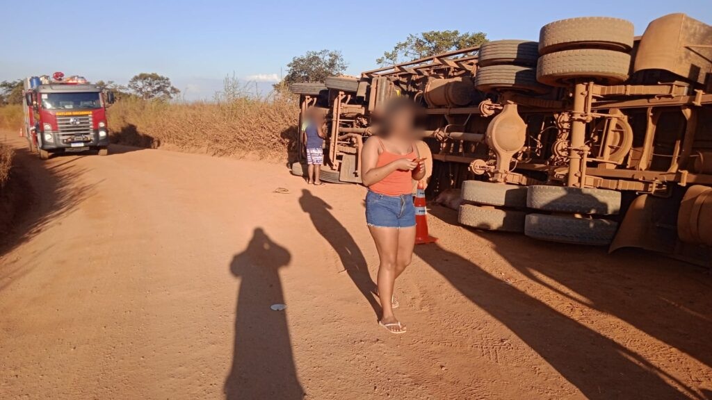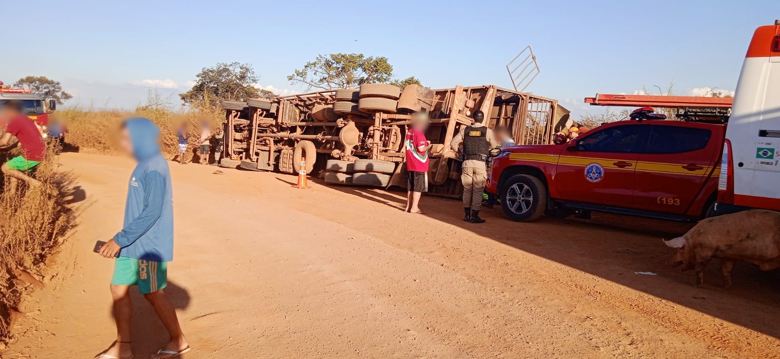 No local o caminhão já se encontrava tombado e alguns animais mortos e outros feridos, onde segundo populares presentes no local, o caminhão veio a perder o freio e colidiu na lateral do automóvel.