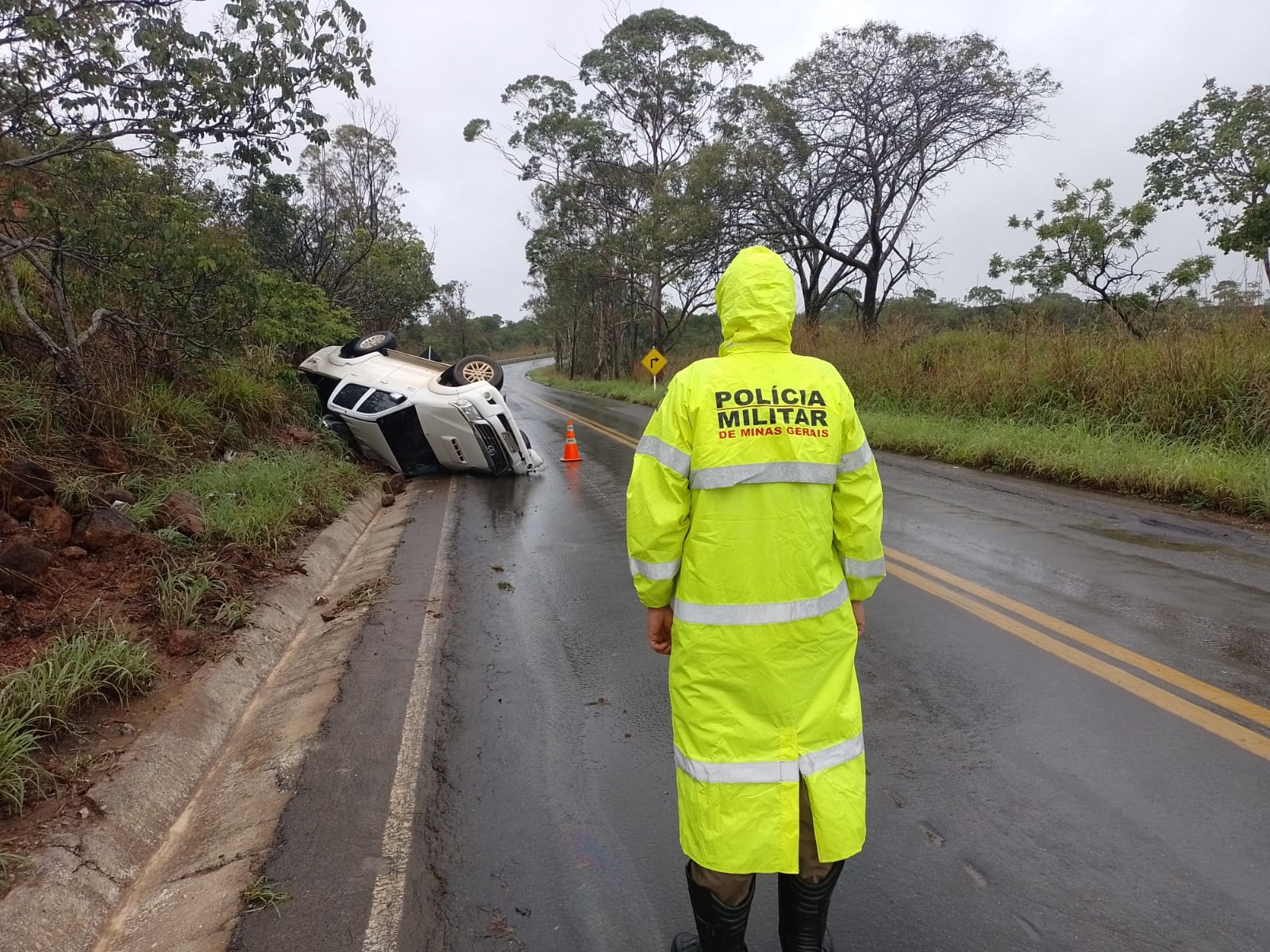 Segundo informações da PMR, o veículo seguia de Guarda Mor sentido a Patos de Minas quando, virando em uma curva, o veículo teria aquaplanado – por causa do chão molhado, os pneus perdem atrito com o solo – e o condutor teria, então, perdido o controle direcional, invadindo a pista contrária e colidindo contra o barranco. Dos quatro ocupantes, ninguém se feriu.
