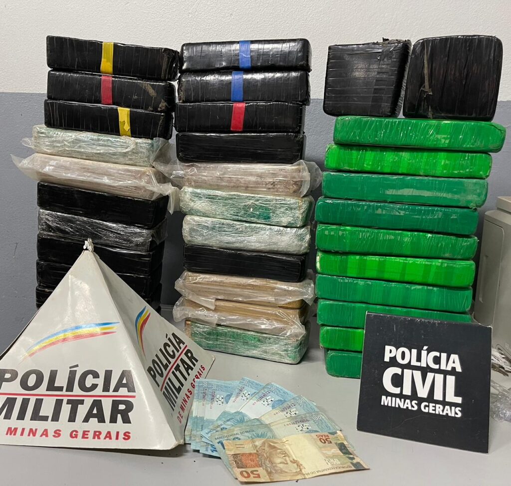 Após a parada do veículo na via, foi realizada uma busca que resultou na apreensão de uma caixa com 16 barras inteiras e 8 fracionadas de substâncias semelhantes ao crack, além de 10 barras de substância semelhante à cocaína e R$ 1.250,00 em dinheiro.