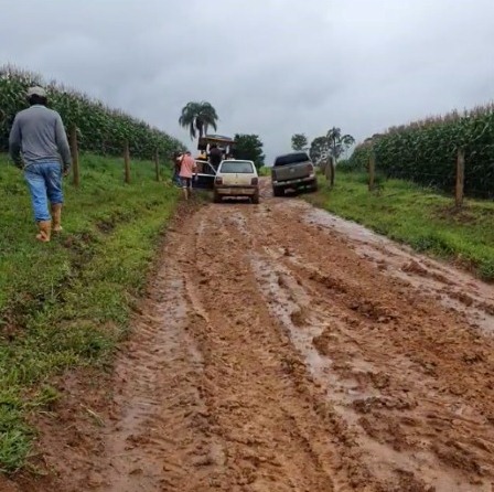 Caminhões de leite que precisaram passar pelas estradas do municipio tiveram que contar com a boa vontade dos produtores para conseguirem vencer os atoleiros.