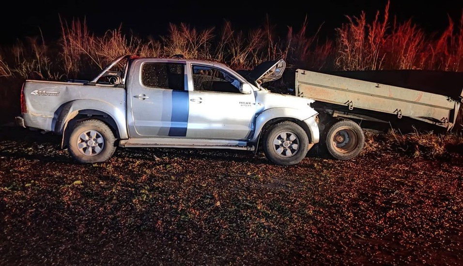 No local, os militares encontraram a pista interditada, sendo que estava na via uma caminhonete Hilux na contramão, presa às ferragens de uma carretinha, a qual esta tinha sido desacoplada do trator que estava na faixa de domínio do lado oposto.