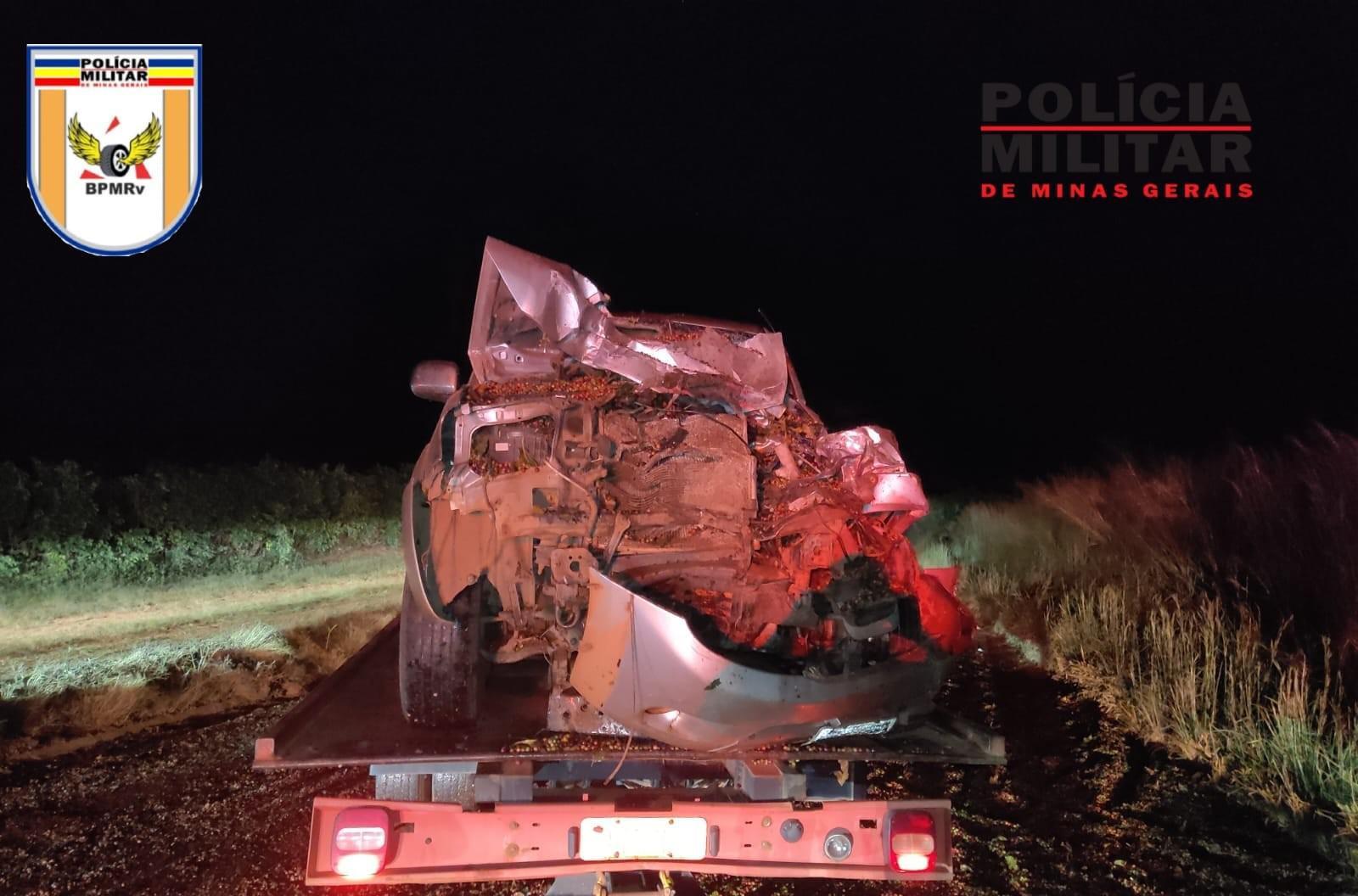 Condutor de caminhonete fica preso às ferragens após acidente com carretinha carregada de café na MG-188 em Patrocínio