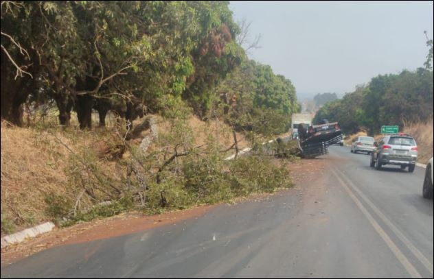 O veículo escorregou na via molhada, subiu no barranco às margens da rodovia e, depois de atingir uma árvore, voltou para a pista e capotou. O motorista foi encaminhado para atendimento médico no Pronto Atendimento (PA) de Lagoa Formosa.