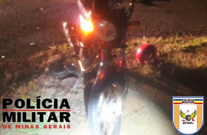 Na noite desta segunda-feira (17-04), a Polícia Militar Rodoviária registrou um acidente de trânsito no KM 176, da MGC-354, próximo ao trevo da Escola Agrícola, em Patos de Minas, entre uma motocicleta e um veículo de passeio.