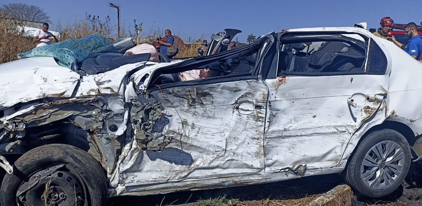 De acordo com as primeiras informações, a condutora de um Voyage branco perdeu o controle direcional ao tentar realizar uma ultrapassagem, colidiu violentamente contra uma carreta e, em seguida, o veículo capotou.