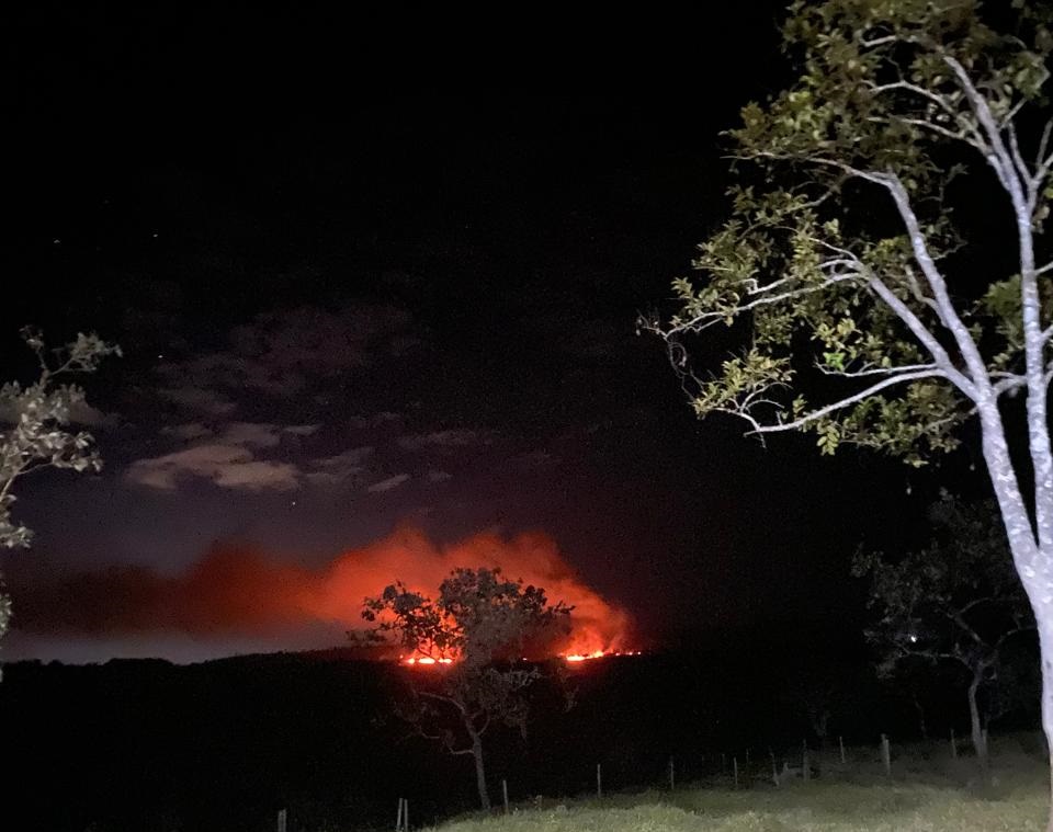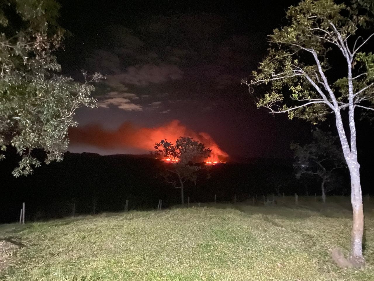 Na noite desta quinta-feira (27), o Corpo de Bombeiros de Patos de Minas recebeu uma solicitação para combater um incêndio em vegetação localizada às margens da rodovia MGC-354, próximo a ponte do Córrego Três Barras, no município de Presidente Olegário.