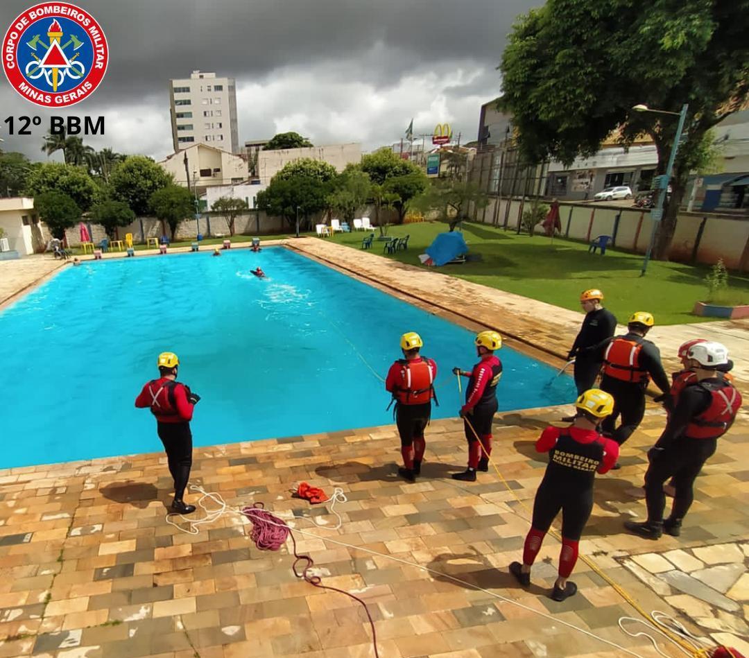 O segundo treinamento foi voltado para as alas operacionais da sede do 12º BBM em piscina de clube do município de Patos de Minas. Contemplou a simulação de abordagem de vítimas em águas rápidas com a utilização de coletes de isca viva e sacos de arremesso, capacitando os militares para ocorrências de salvamento de vítimas ilhadas em veículos ou arrastadas por enxurradas, inundações e correntezas.