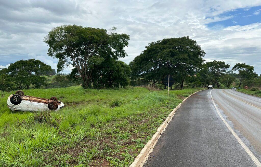 Por volta das 15h deste sábado (16/11), a Polícia Militar Rodoviária foi acionada na BR-352, KM-182 em Patos de Minas para atender uma ocôrrencia de acidente de trânsito. No local foi apurado que a condutora de 38 anos conduzia o veículo Chevrolet/Onix, de cor branca, sentido Lagoa Formosa para Patos de Minas, quando veio a perder o controle direcional do veículo, saindo da pista de rolamento e capotando logo em seguida, vindo o veículo parar na faixa de domínio da rodovia com o conjunto pneumático voltado pra cima.