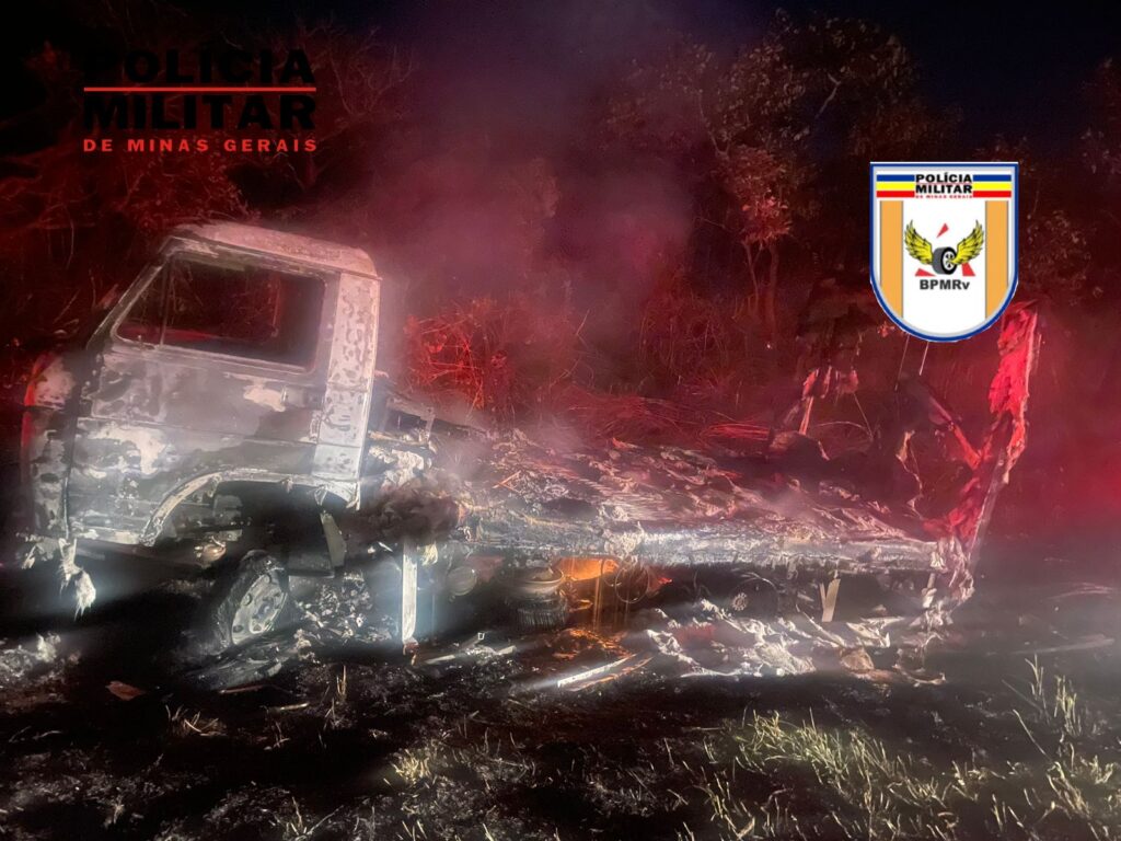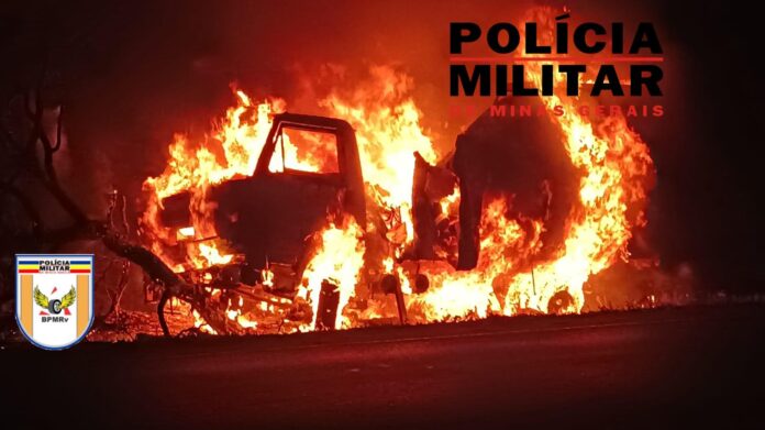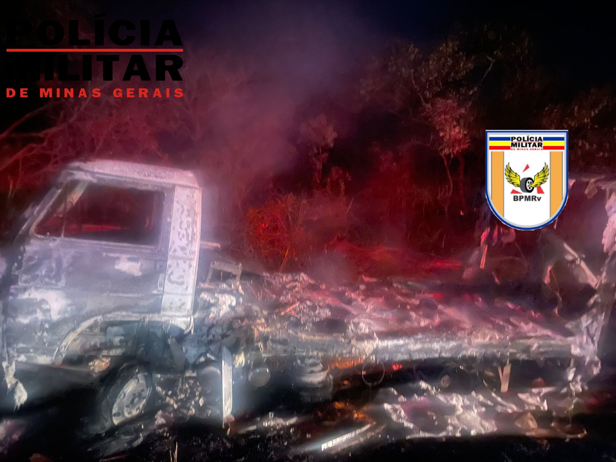 No momento o local estava ocorrendo uma queimada, tendo o fogo atingindo o caminhão e danificando o caminhão completamente.