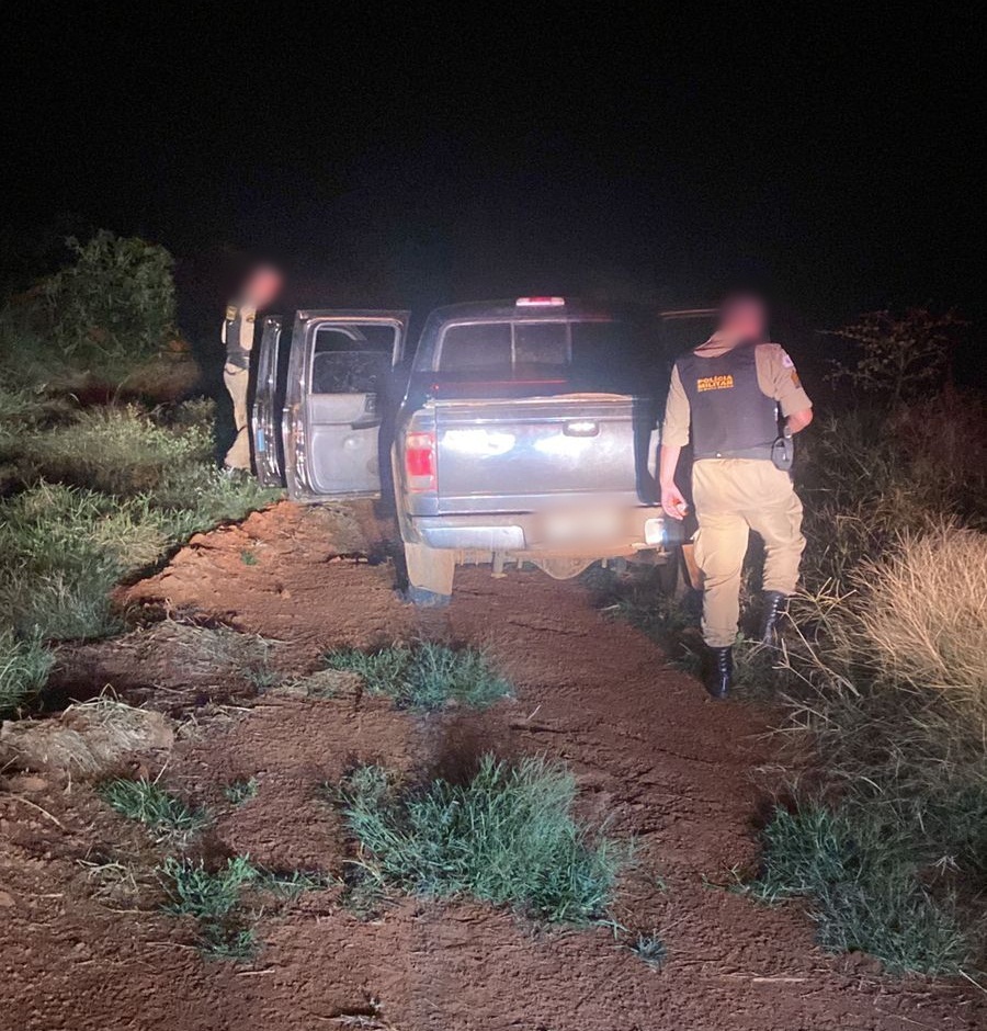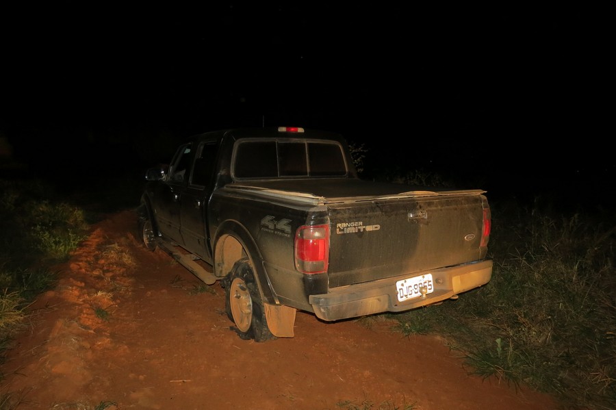 No Bairro Nova Floresta, os policiais conseguiram interceptar a caminhonete. Porém, o criminoso desceu do veículo e fugiu pelo matagal.