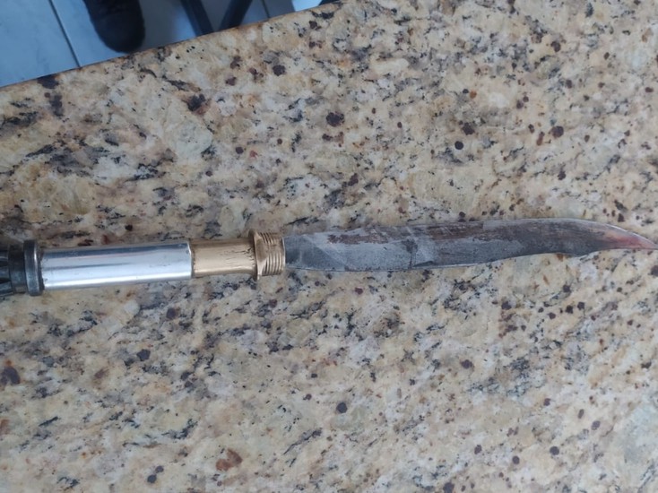 O site conversou com o Sargento Juliano de Varjão de Minas. Ele informou que, após receber a informação do Centro de Operação da PM, um cerco foi montado na entrada de Varjão e conseguiram abordar o acusado que não ofereceu resistência. Ele estava em um VW/Gol e foi preso com a faca de aproximadamente 50 centímetros de lâmina.