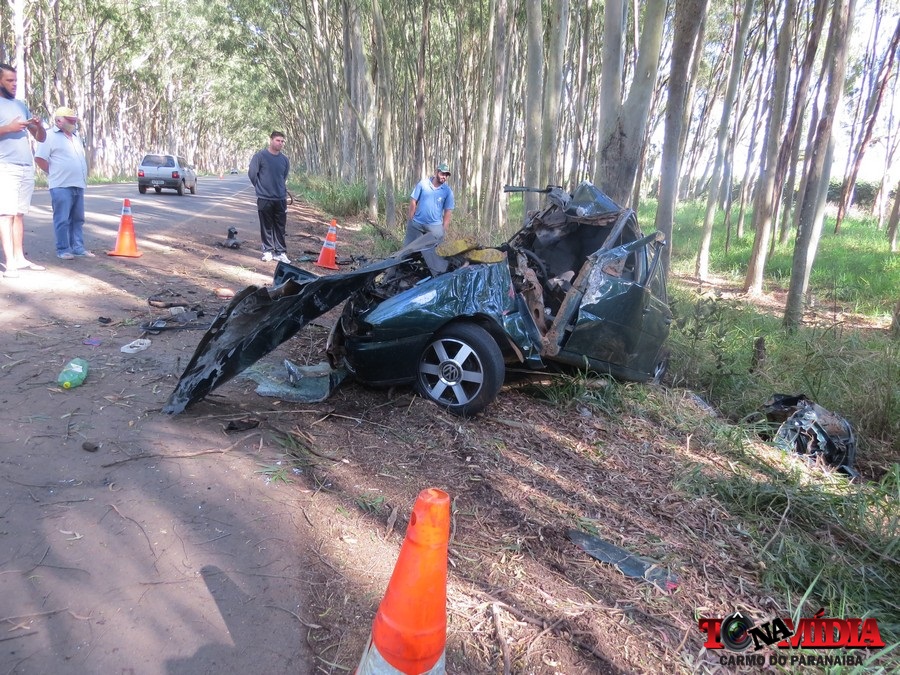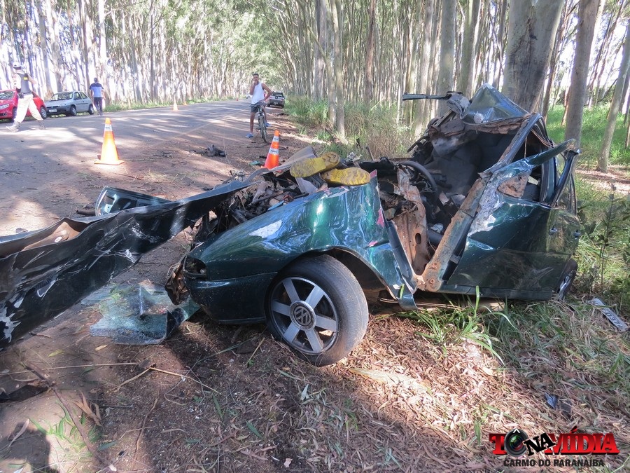 Um rapaz escapou com vida, por milagre, de um grave acidente ocorrido na manhã deste sábado (04/07) na cidade de Carmo do Paranaíba. A colisão ocorreu na AMG-410, quando o condutor de um automóvel VW/Gol, cor verde, perdeu o controle direcional e se chocou fortemente contra um eucalipto, que fica às margens da rodovia. Com o impacto, o carro ficou totalmente destruído. O condutor, um jovem de 22 anos, foi socorrido por uma ambulância da prefeitura municipal para a Unidade de Pronto Atendimento (UPA) da cidade.