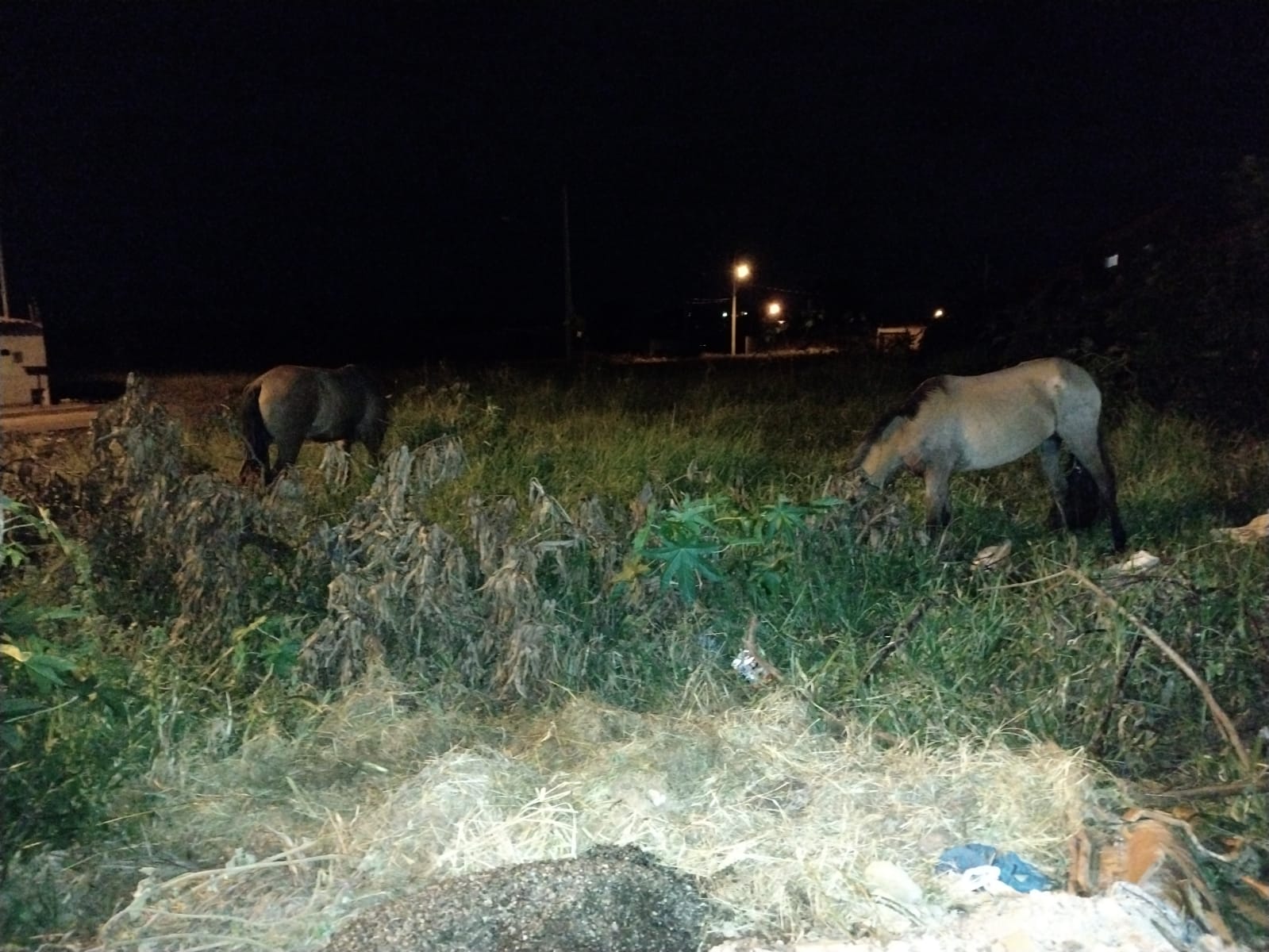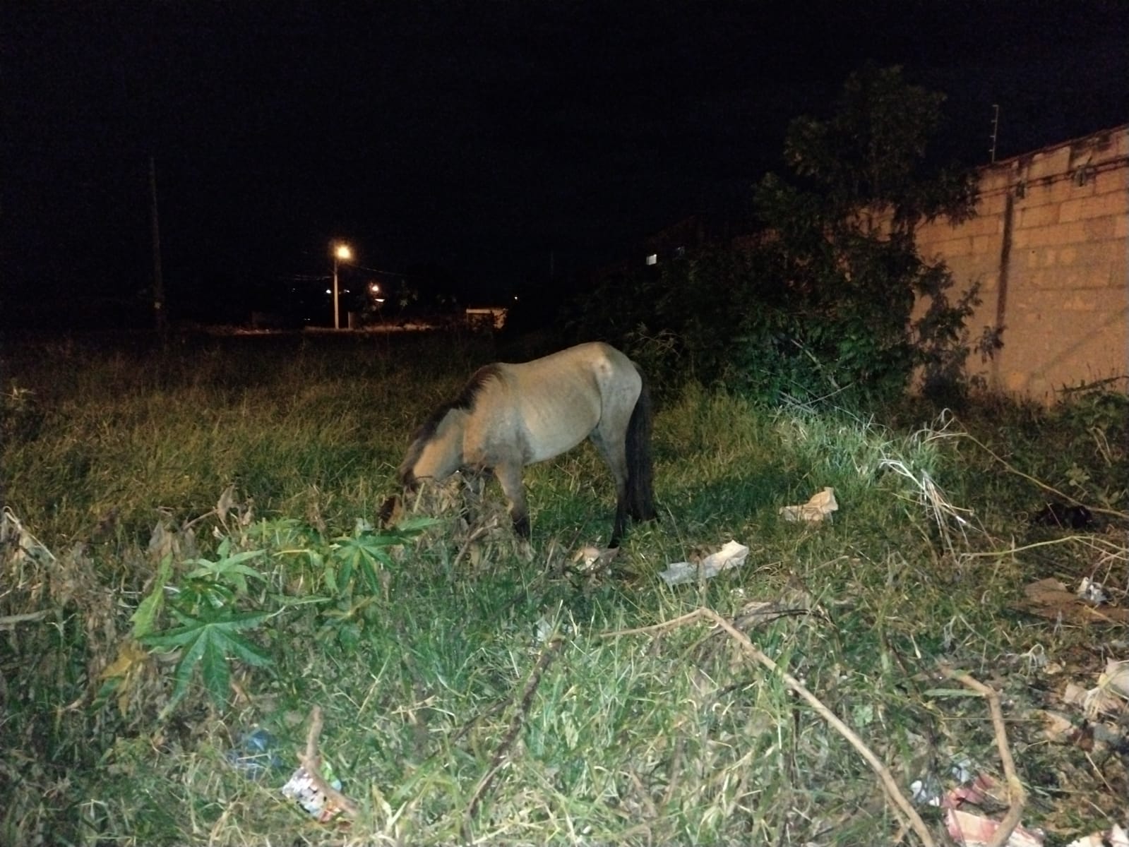 Segundo os moradores do bairro, haviam dois cavalos, sendo um solto e outro amarrado, em um lote da Rua H.