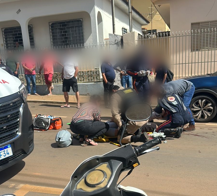 O acidente aconteceu em um cruzamento na região central da cidade, nas proximidades da Prefeitura. No local, os militares encontraram o jovem caído ao solo, com fratura exposta na perna esquerda e diversas escoriações.