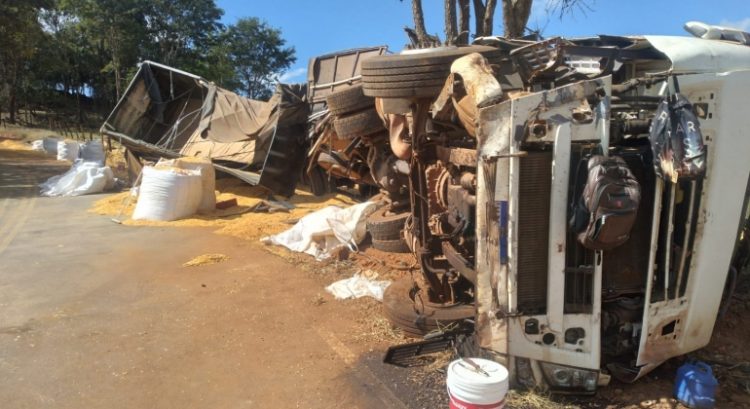 Início Destaques Motorista de 31 anos fica ferido após bitrem tombar na estrada de...