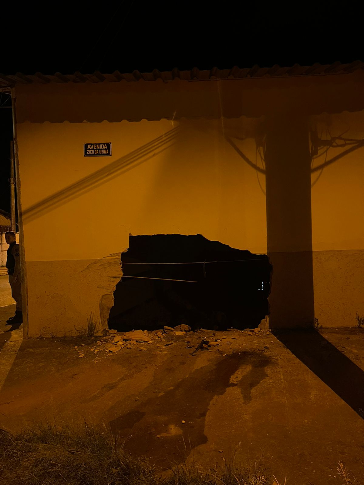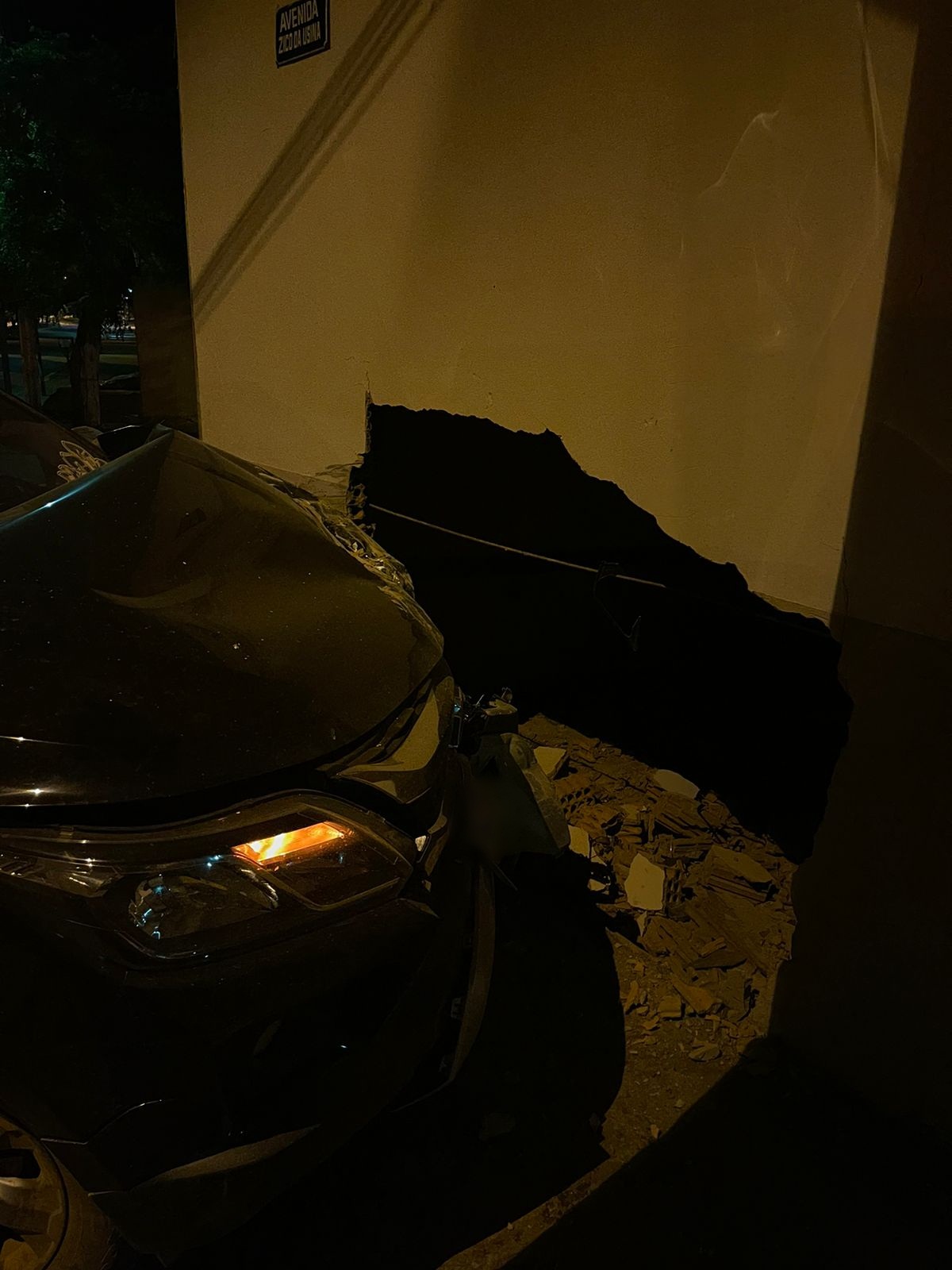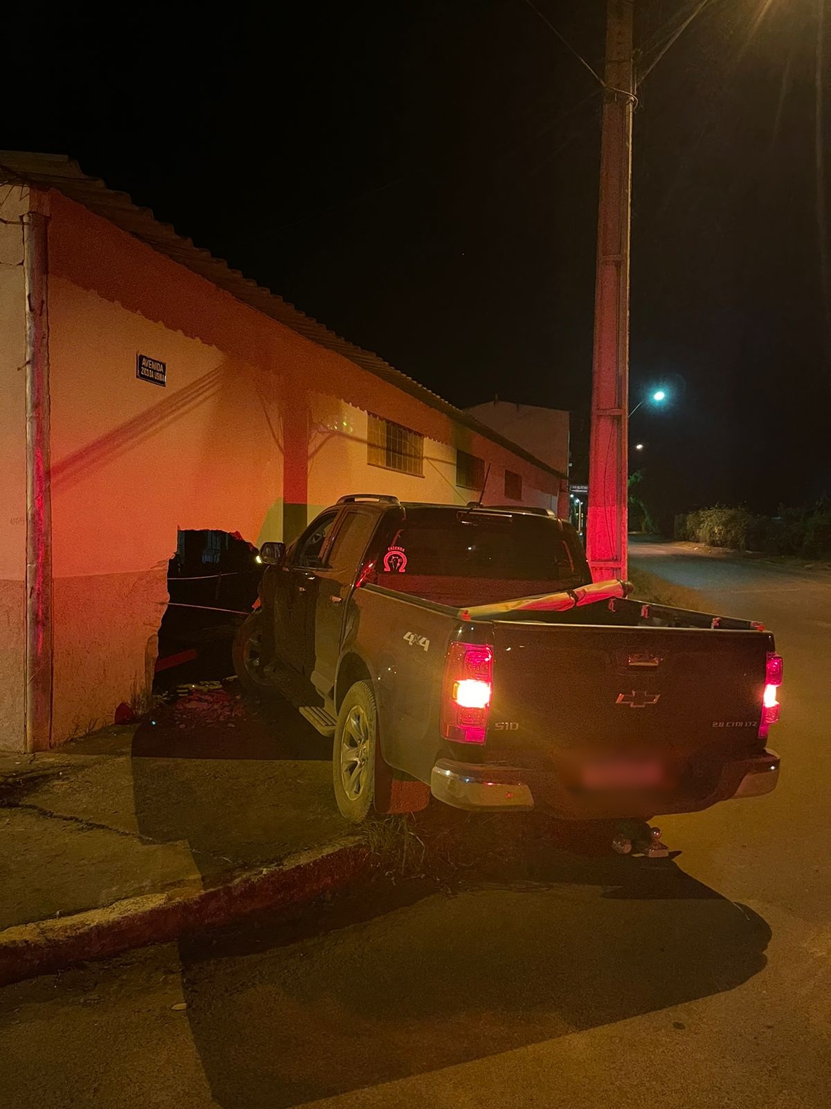Os policiais chegaram e encontraram a caminhonete GM/S-10 preta abandonada no local, sem condições de transitar. Ela havia batido contra o muro lateral do salão da Igreja Santos Reis, que foi danificado.