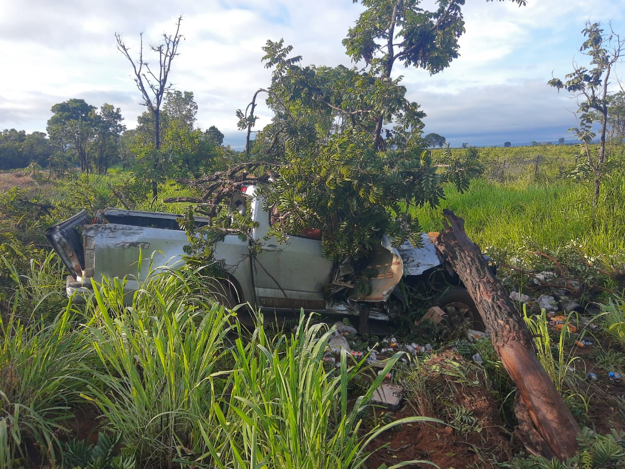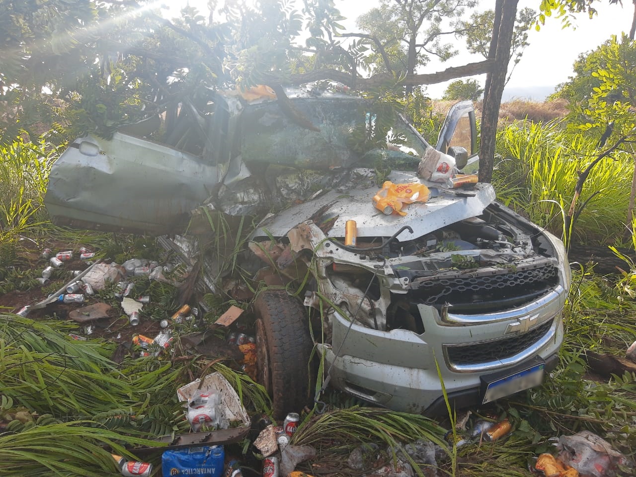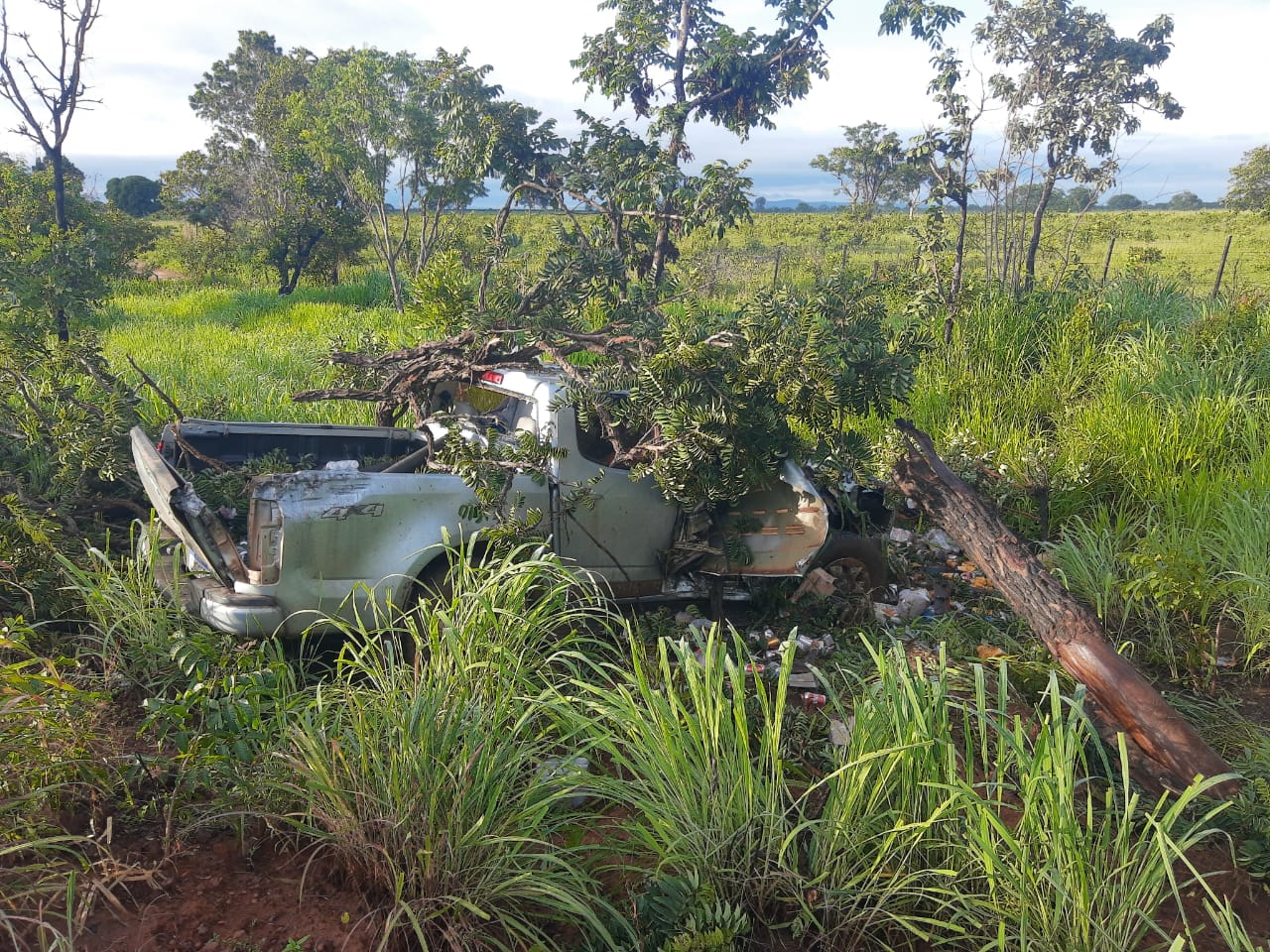 Quando chegou ao local, a PMR deparou com a camionete Chevrolet/S10 LT DD4, fora da pista de rolamento, no sentido crescente a via.