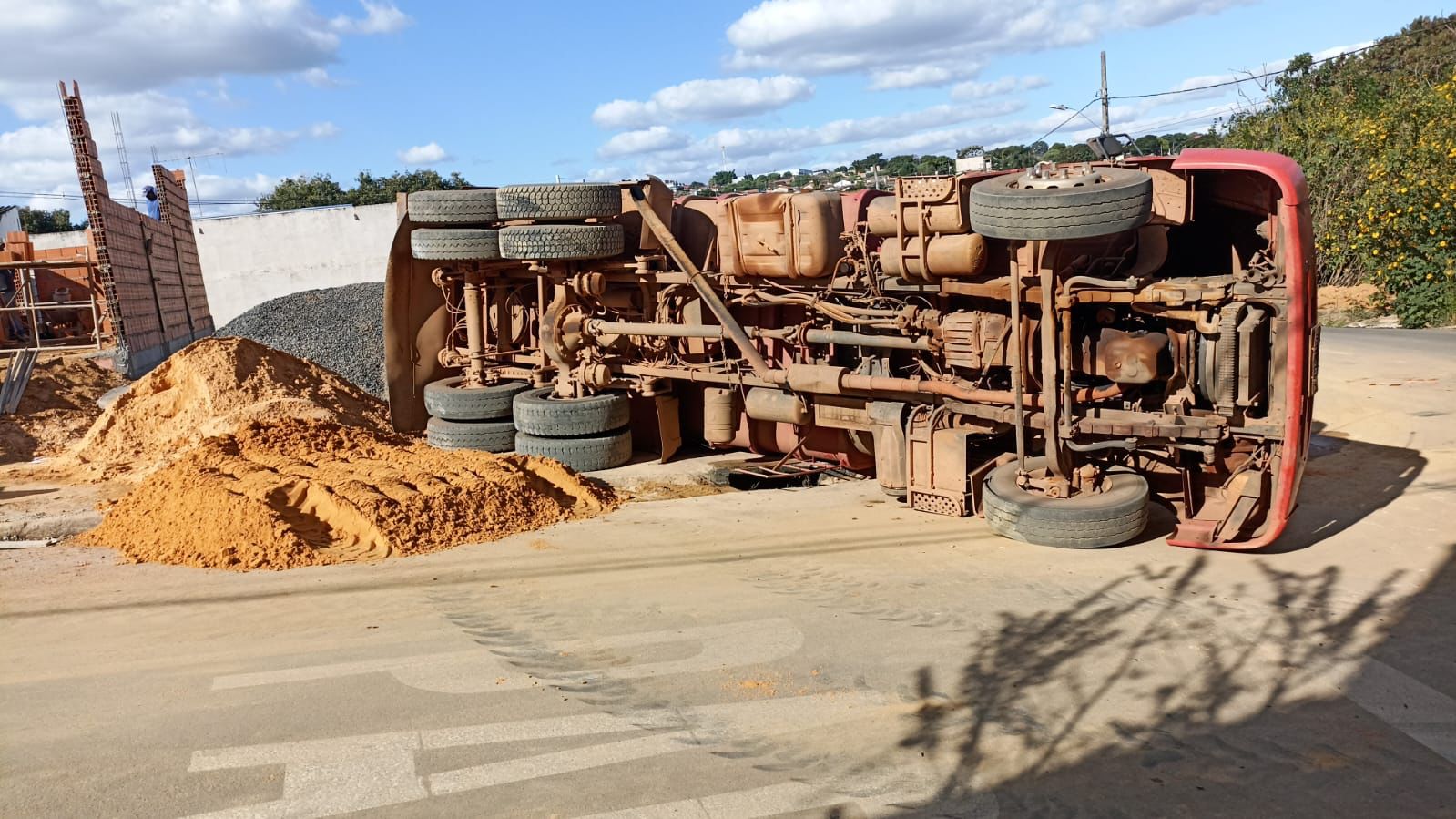 Na tarde desta quarta-feira (24/05), um caminhão caçamba tombou durante o processo de descarregamento em uma residência em construção, localizada na Rua José Clemente, no bairro Jardim Ipiranga, em Patrocínio. O incidente causou susto na vizinhança devido ao barulho e ao impacto visual.