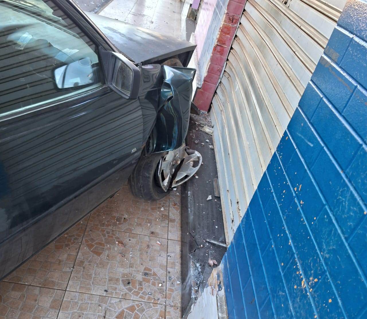 De acordo com a Polícia Militar, o veículo subiu na calçada, atingiu a porta de um estabelecimento e causou danos significativos à estrutura, além de comprometer a parte frontal direita do automóvel. Ao chegarem ao local, os militares constataram que o condutor e os passageiros haviam abandonado o carro e fugido da cena.