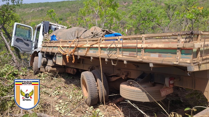 Neste instante, o motorista perdeu o controle do veículo, e saiu da pista pelo lado direito do sentido em que seguia. O caminhão parou após atingir alguns arbustos na faixa de domínio onde permaneceu. Apesar do susto e dos danos, o motorista não se feriu.