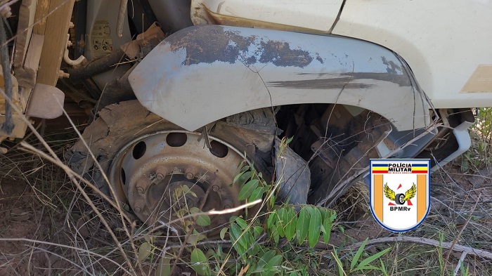 Ao chegarem no local, os militares fizeram contato com o motorista do caminhão. Ele relatou que seguia no sentido cidade de Presidente Olegário/BR-040, quando o pneu dianteiro direito estourou repentinamente.
