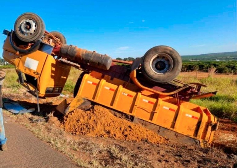 Na tentativa de escapar do impacto, o motorista perdeu o controle direcional do caminhão, que saiu da pista, desceu um barranco e tombou às margens da rodovia.