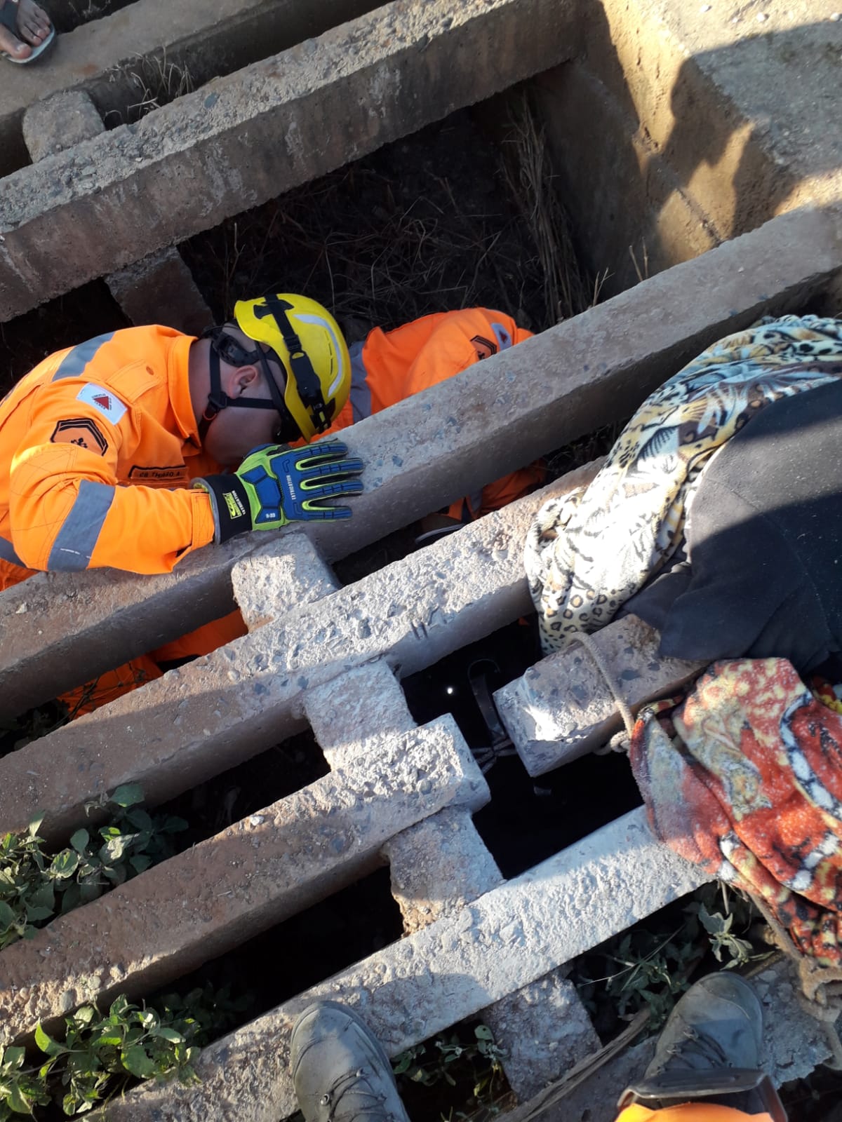 Após retirar uma das bases de concreto, os militares conseguiram retirar as pernas da mulher.