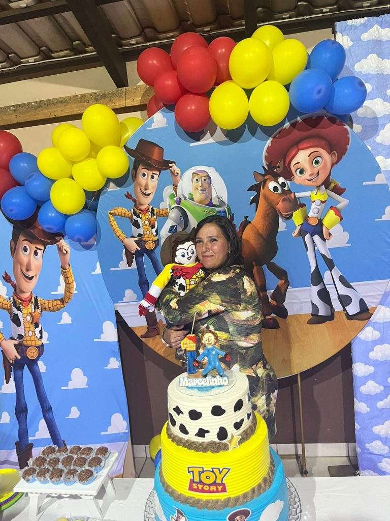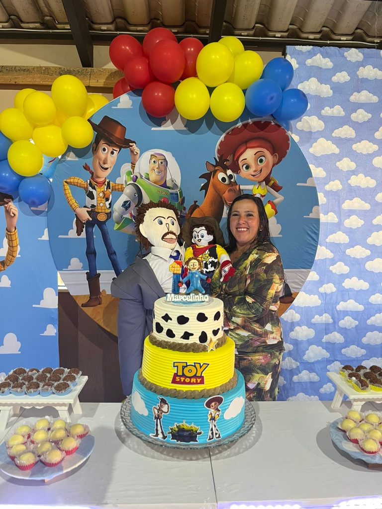 No último sábado, Meirivone Rocha, conhecida como “Santinha”, celebrou o primeiro aniversário de seu “filho”, o bonequinho Marcelinho, fruto de seu casamento com o boneco de pano Marcelo. A comemoração aconteceu no Espaço Bangalô, em Rio Paranaíba, e reuniu cerca de 80 pessoas. Santinha deixa claro que tudo não passa de um teatro, mas tem o sonho de ganhar uma casa própria e sair do aluguel.