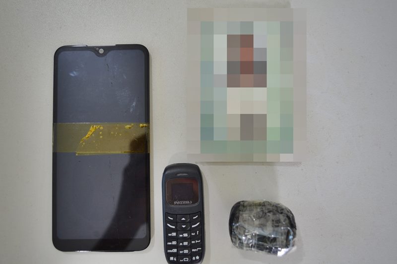 Durante verificação, policiais penais constataram que os objetos se tratava de um mini aparelho de telefone celular, uma tela de smartphone e uma substância de semelhante a cola de sapateiro.