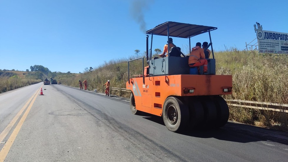 Quem passar pela BR-365 entre Patrocínio e Patos de Minas terá que ter um pouco de paciência. Isso porque as obras de tapa buraco e de revitalização da rodovia estão a todo vapor. Máquinas e aproximadamente 60 pessoas trabalham no local. A previsão é de que o trabalho seja concluído nos próximos 20 dias.