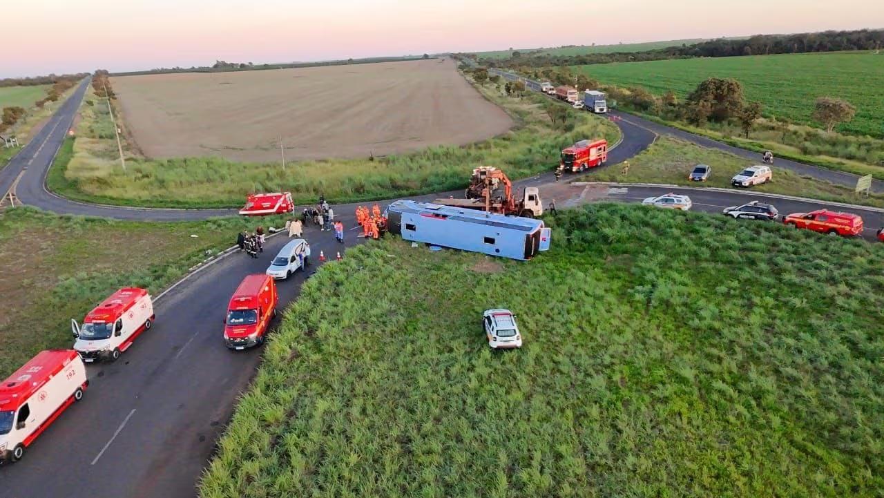 Segundo a Polícia Militar Rodoviária (PMRv), o ônibus saiu de Anápolis (GO) e seguia para São Paulo (SP). O motorista teria perdido o controle do veículo no trecho conhecido como “Trevo do Queixinho” , capotou e o veículo ficou tombado.
