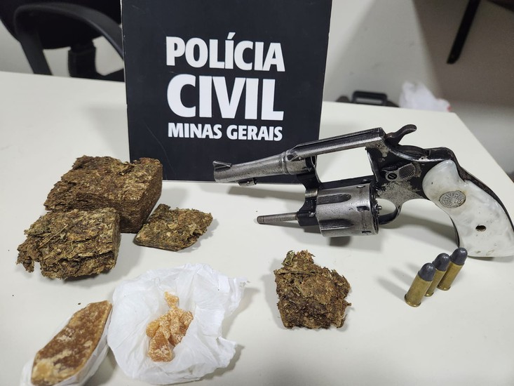 Na residência em que estavam os suspeitos, os policiais encontraram duas porções de substância semelhante a crack, 03 tabletes de substância semelhante a maconha e outra porção de maconha, além de uma faca e um revólver calibre .32.