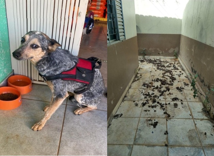 Na denúncia ainda havia informação de que o local estava extremamente insalubre e cheio de fezes. O denunciante disse ainda que a cachorra chorava muito, principalmente a noite, devido ao estado em que se encontrava.