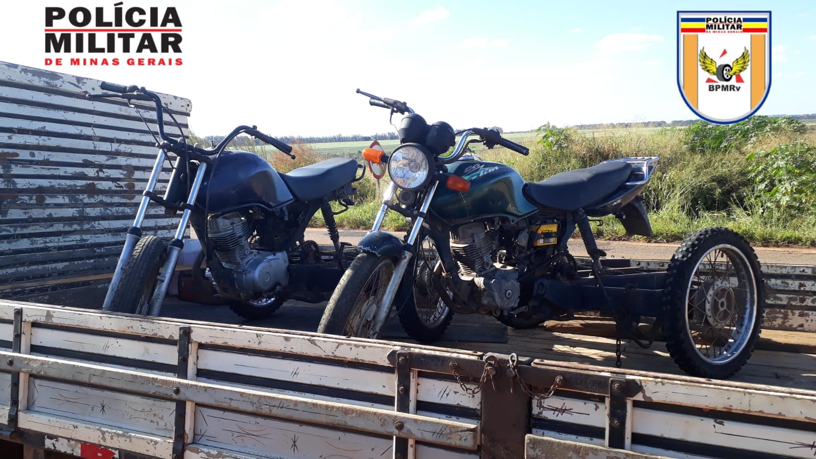 A primeira apreensão ocorreu durante operação Policial no km 395 da rodovia MG 188 em Patrocínio. Os policiais abordaram um caminhão, conduzido por F.F.S. de 55 anos, e no decorrer da fiscalização verificou que veículo transportava duas motocicletas adaptadas para o manuseio de café em terreirão. Ambas estavam sem placas de identificação e com a numeração do chassi suprimido.