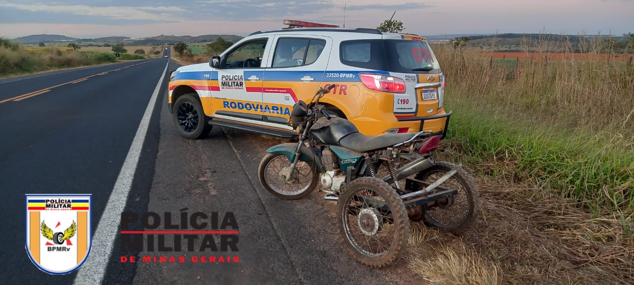 A terceira motocicleta foi apreendida durante operação no km 171 da MGC 354 em Patos de Minas. Os policiais abordaram a motocicleta Honda conduzida pela jovem identificada pelas iniciais L.F.D.R de 19 anos. No decorrer da fiscalização, os militares observaram que a motocicleta estava sem placas de identificação e com a numeração do chassi suprimido.
