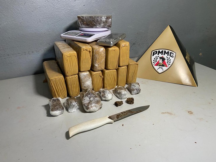 A Polícia Militar realizou uma grande apreensão de drogas, na tarde desta quarta-feira (15), na casa de uma idosa no bairro Morada do Sol, em Patos de Minas. Ao todo, foram encontradas 13 barras de maconha, além de porções menores da droga, somando aproximadamente 10 quilos. A moradora, de 67 anos, e um homem, de 38, foram presos.