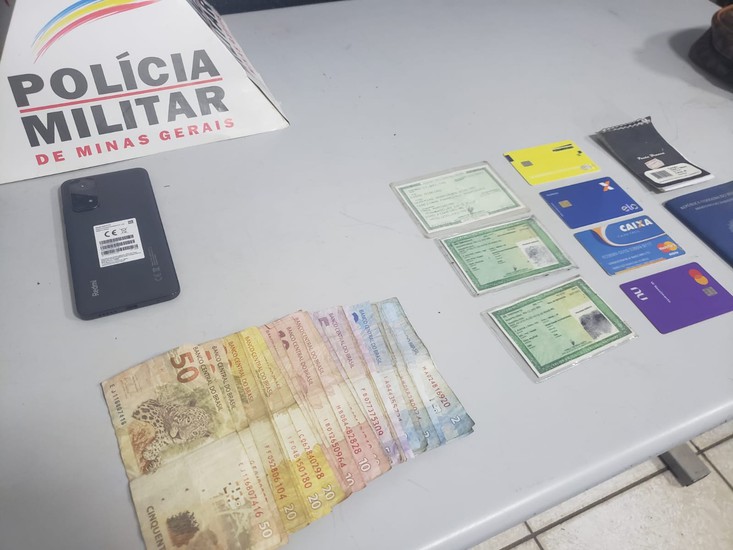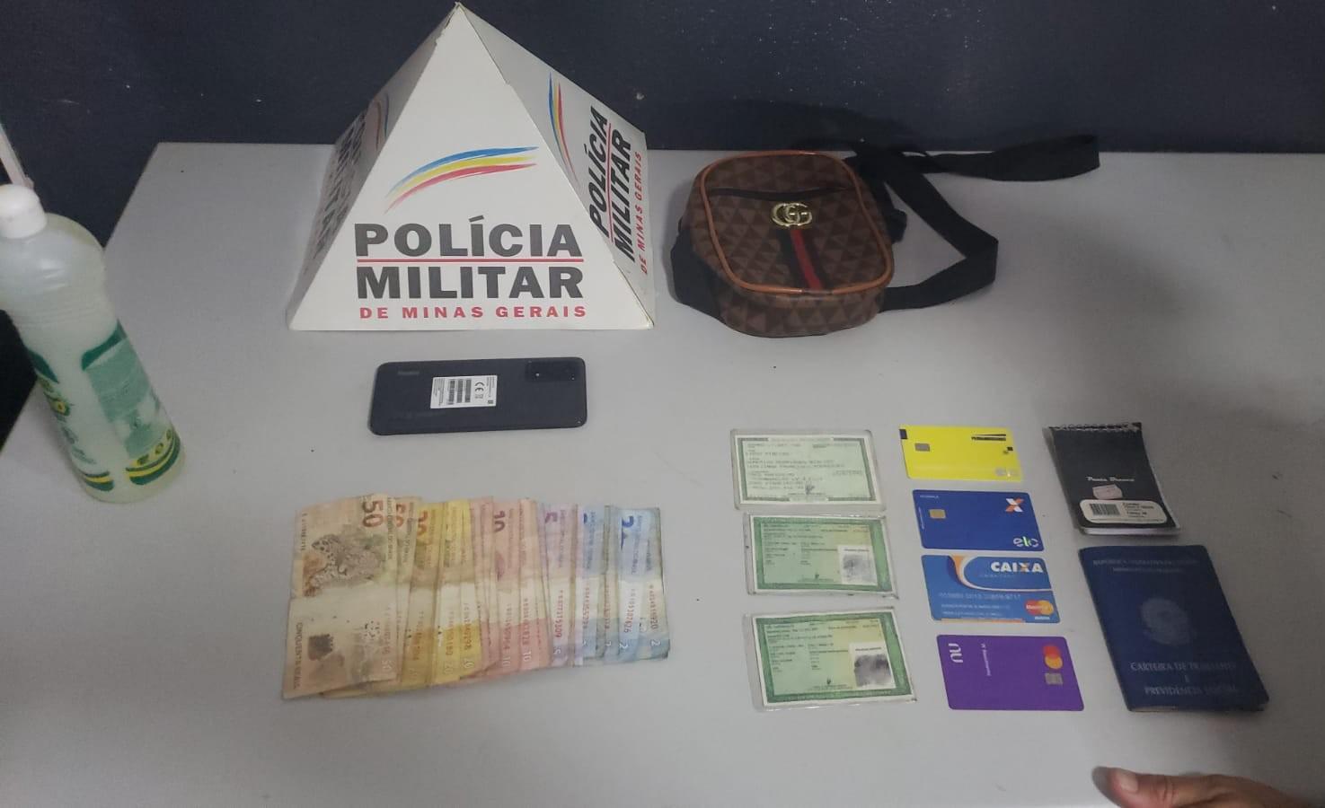 Ao verificar o que havia na bolsa, os policiais encontraram dois celulares, um que havia acabado de ser furtado e outro que foi furtado em data anterior, mais de R$ 400,00 em dinheiro e documentos de terceiros. A Polícia Militar acredita que os documentos são de usuários de drogas que foram penhorados para garantir pagamento.