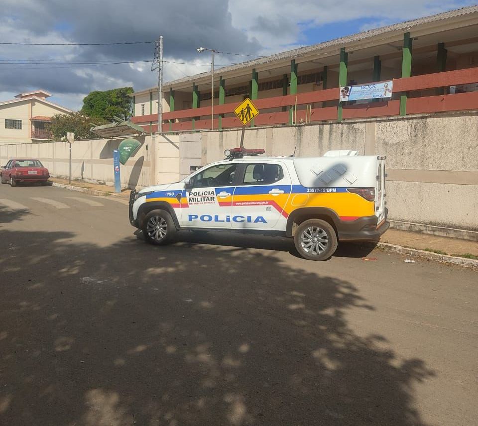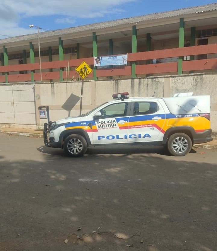 Em Carmo do Paranaíba, a viatura realizou o policiamento ostensivo preventivo, com passagem na porta das escolas, mais precisamente durante a chegada dos alunos nos respectivos educandários.