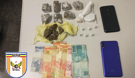 Durante as buscas pessoais, os policias encontraram seis pinos de cocaína e R$217 em espécie no bolso da calça do passageiro de 19 anos. Além disso, em sua mochila havia ainda sete tabletes de maconha e uma pedra de crack. Sobre a propriedade dos materiais, os jovens teria informado ao militares que o dinheiro e as drogas pertenciam a ele.